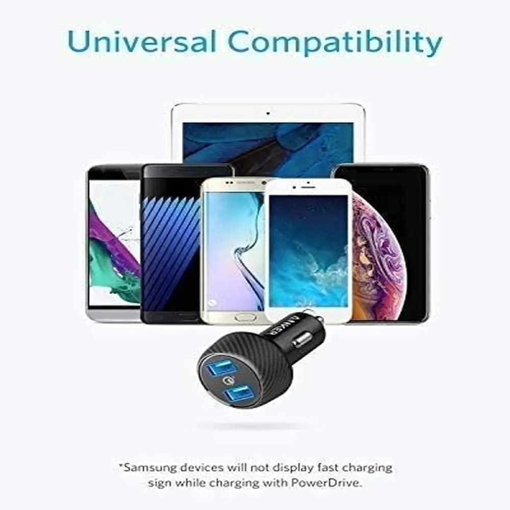 Experience powerful and efficient on-the-go charging with the Anker PowerDrive Speed 2 Quick Charge 3.0. Designed for performance and convenience, it delivers lightning-fast charging for two devices simultaneously with a total output of 39W. Equipped with Quick Charge 3.0, PowerIQ, and VoltageBoost technologies, it ensures optimal speed for both Quick Charge and standard devices. Its compact, premium carbon-fiber design fits neatly into your car while adding a touch of style. Perfect for road trips, commutes, and everyday travel.