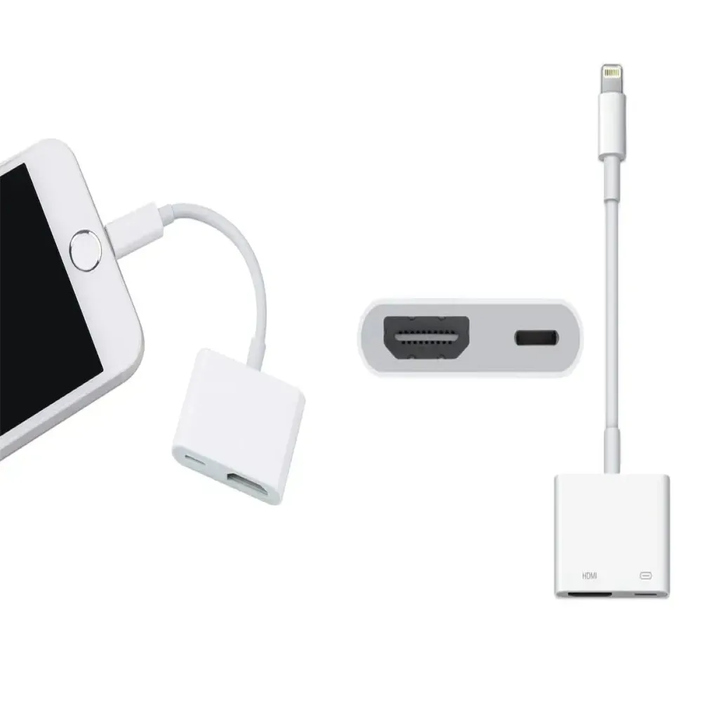 The Apple Lightning to Digital AV Adapter is the perfect accessory for connecting your iPhone, iPad, or iPod with a Lightning connector to an HDMI-equipped display. It mirrors your device screen in stunning 1080p HD, making it ideal for presentations, videos, games, and more. From the boardroom to your living room, this adapter ensures a crisp and seamless viewing experience. It also outputs both video and audio, so you can enjoy movies, TV shows, and captured videos with full sound. With its plug-and-play simplicity, connecting to TVs, projectors, and monitors becomes quick and hassle-free. Compact and portable, it’s the go-to choice for both professional and personal use.