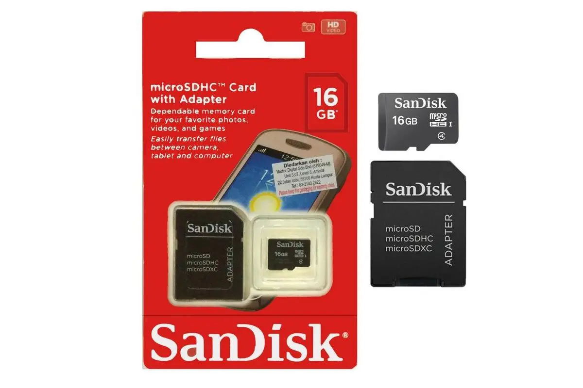 The SanDisk MicroSDHC Card 16GB Class 4 offers reliable and secure storage for your photos, videos, music, and documents. With a minimum data transfer speed of 4MB/s, it ensures smooth performance for everyday tasks. The included full-size SD adapter adds flexibility, allowing easy use with cameras, laptops, and other devices. Compact and durable, this memory card is a practical choice for expanding storage on mobile phones, tablets, and more.