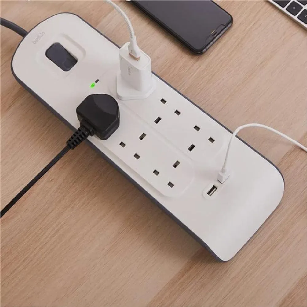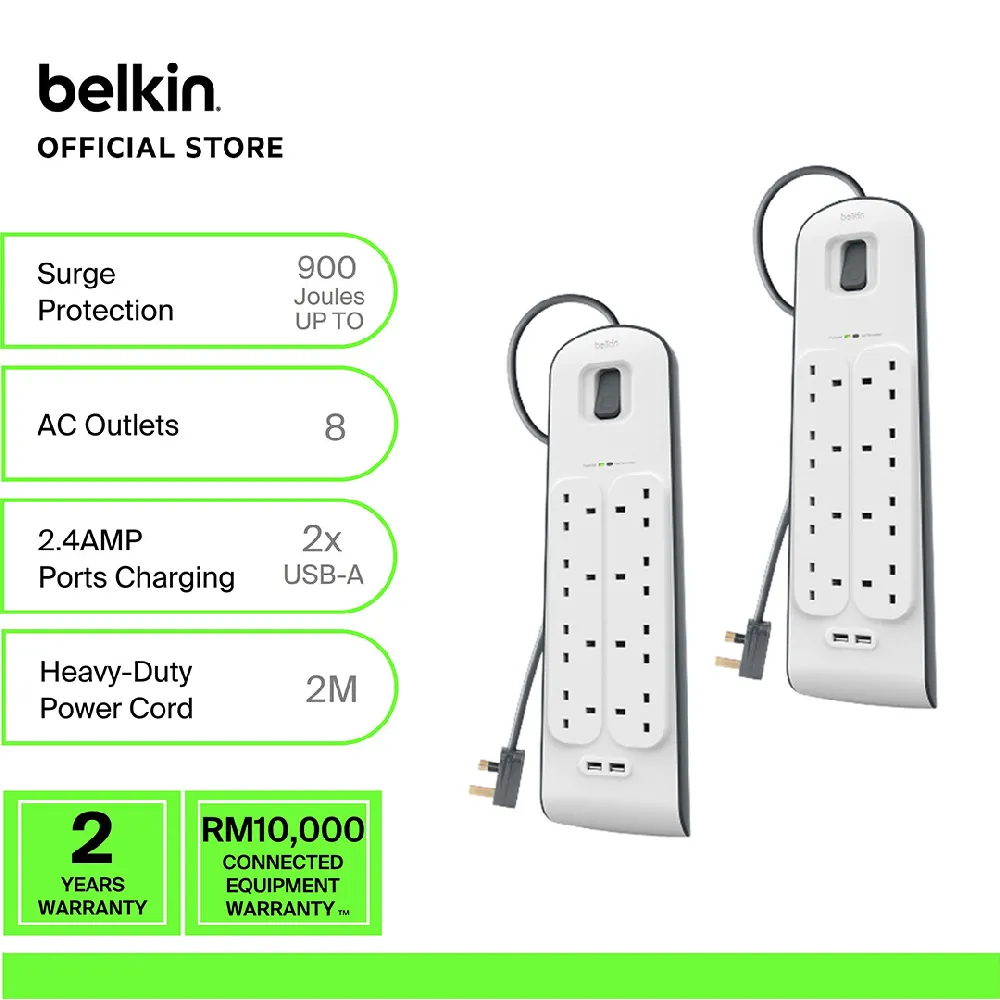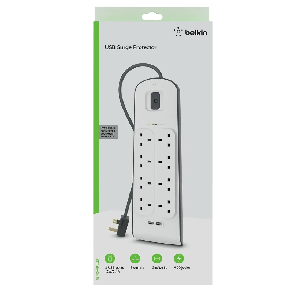 The Belkin Surge Plus Power Strip is the perfect solution to protect your valuable electronics from harmful power surges and spikes. With 8 AC outlets and 2 integrated USB ports, it provides ample space and convenience for powering multiple devices at once. Offering up to 900 joules of protection, it shields your office equipment, home theater, and household devices against voltage fluctuations. Its durable design and reliable performance make it an essential addition to any workspace or home setup.