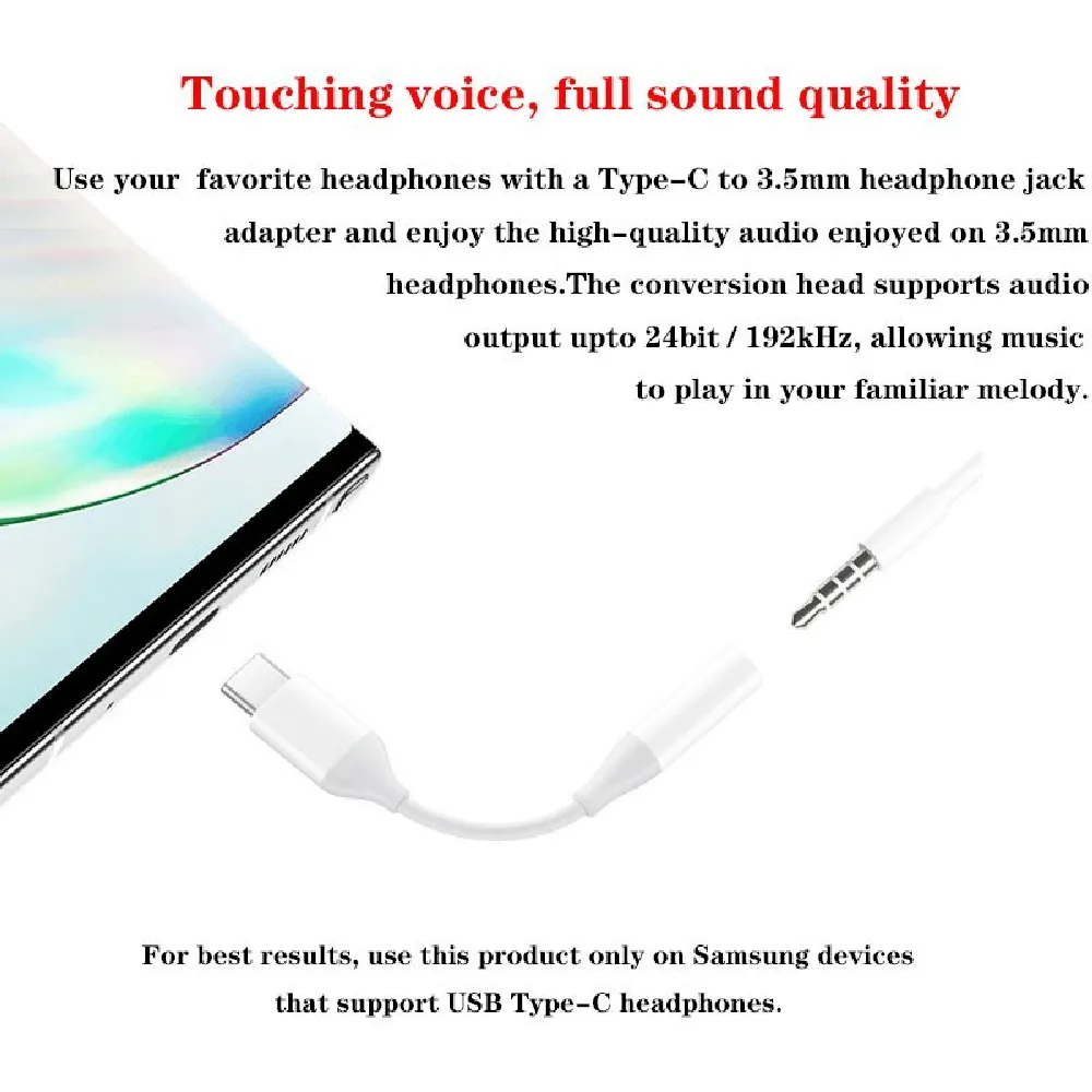 Enjoy premium audio quality and seamless connectivity with the Samsung USB-C to Headset Jack Adapter. Designed to bridge the gap between modern USB-C devices and traditional 3.5mm headphones, this compact adapter ensures you don’t have to compromise on sound or convenience. It converts digital audio signals into analog with ultra-high fidelity, supporting up to 24bit/192kHz for a rich listening experience. Perfect for smartphones without a headphone jack, it lets you keep using your favorite wired headphones without sacrificing audio quality. Lightweight and easy to carry, it’s a reliable accessory for music, calls, and video on the go. Made by Samsung, it's crafted for durability and optimized compatibility with Galaxy and other USB-C devices.