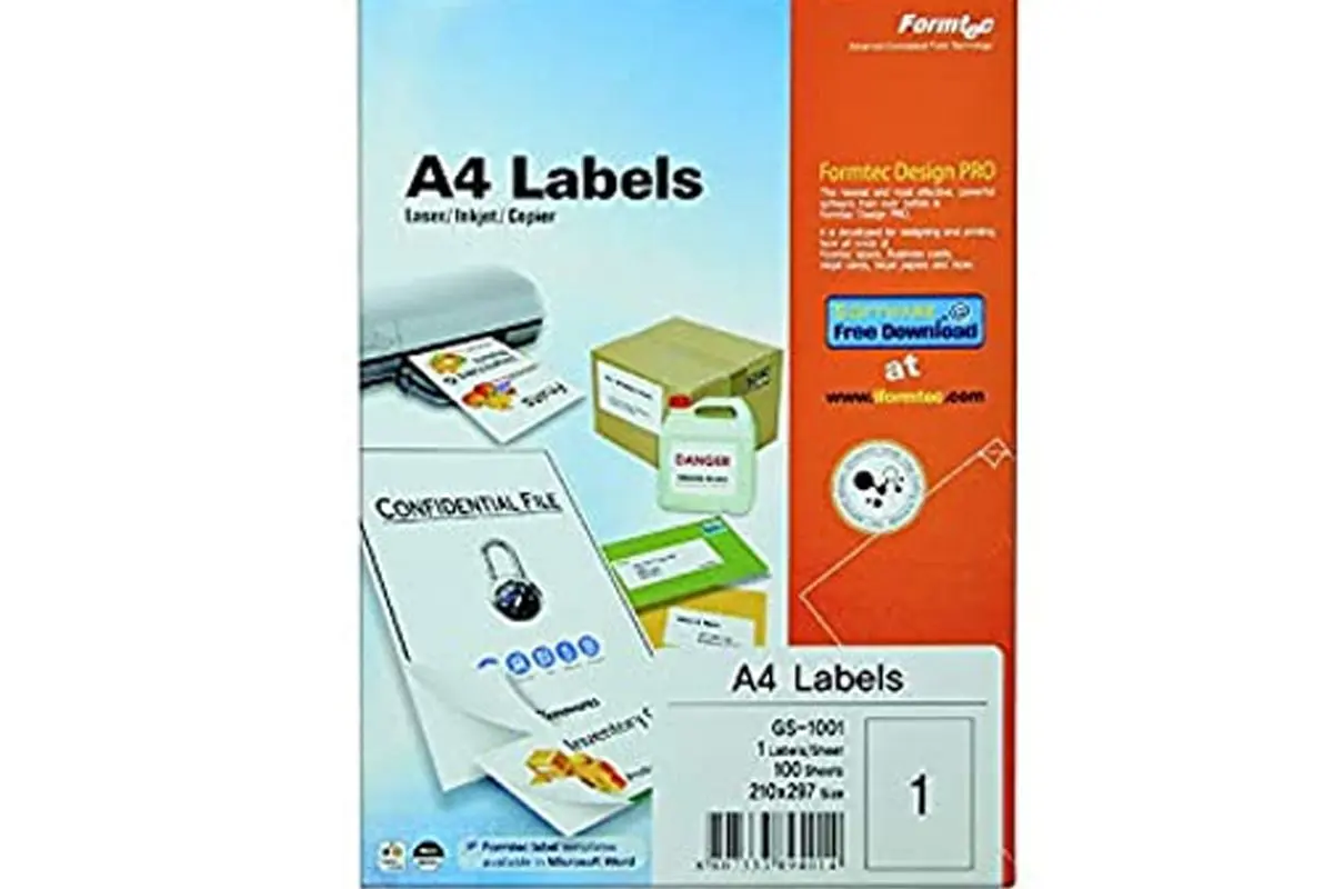 Brand: Formtec Model Number: FT-GS-1116 Type: Labels, Indexes & Stamps Size: 105 x 37 mm Pack Contains: 100 Sheets Color: White Details: Wide range of sizes and forms. Address, shipping, files, CD/DVD, and media labels. Finishing technology prevent...