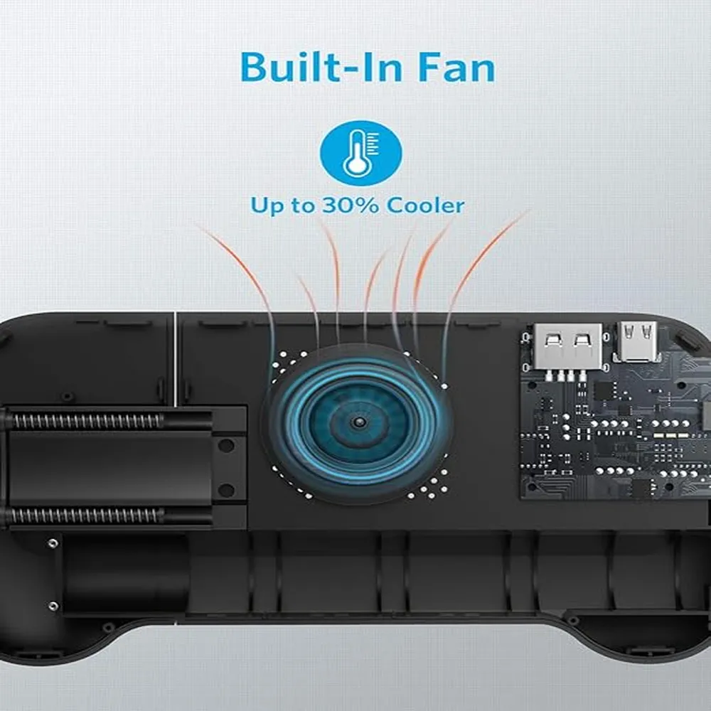 The Anker PowerCore Play 6K is the ultimate companion for mobile gamers who want comfort, performance, and extended playtime. Featuring an ergonomic gamepad design with a built-in 6,700mAh battery, it keeps your phone charged while you play—no interruptions, no low-battery anxiety. Its built-in cooling fan prevents overheating during intense gaming sessions, ensuring smooth performance. The adjustable grip fits a wide range of smartphones, while the dual charging ports (USB & USB-C) allow versatile power options.
