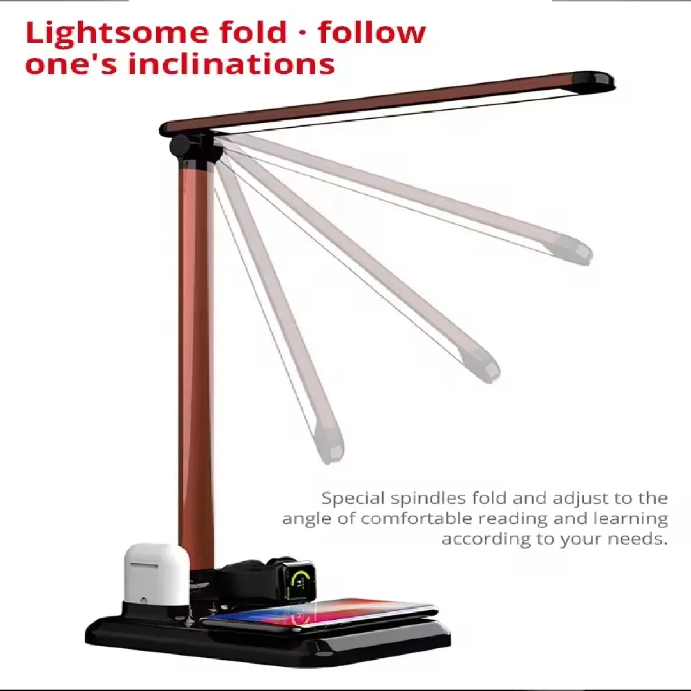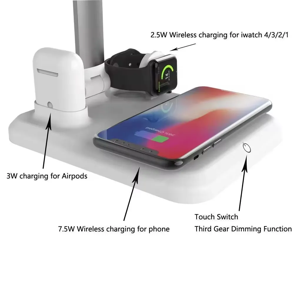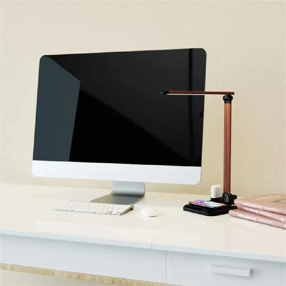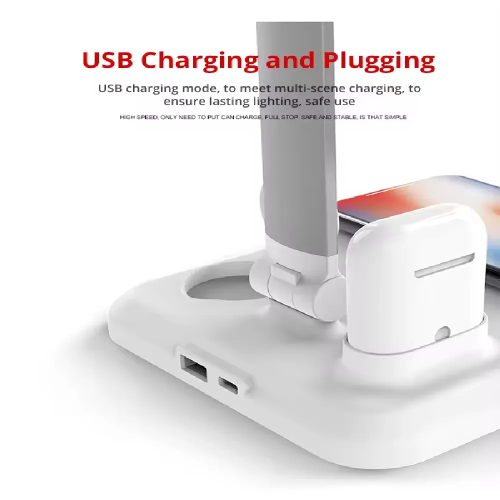 The sleek and multifunctional desktop essential that combines lighting and charging into one smart design. With a built-in 10W wireless charging pad, it can power your smartphone, smartwatch, and earbuds all at once—eliminating cable clutter. The LED table lamp features adjustable brightness for reading, studying, or ambient lighting. Perfect for home, office, or bedside use, this space-saving device enhances both convenience and style. Designed for Apple and compatible Qi-enabled devices, it’s your all-in-one solution for a tidy and productive workspace.