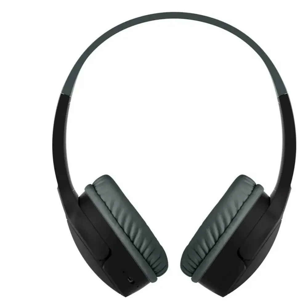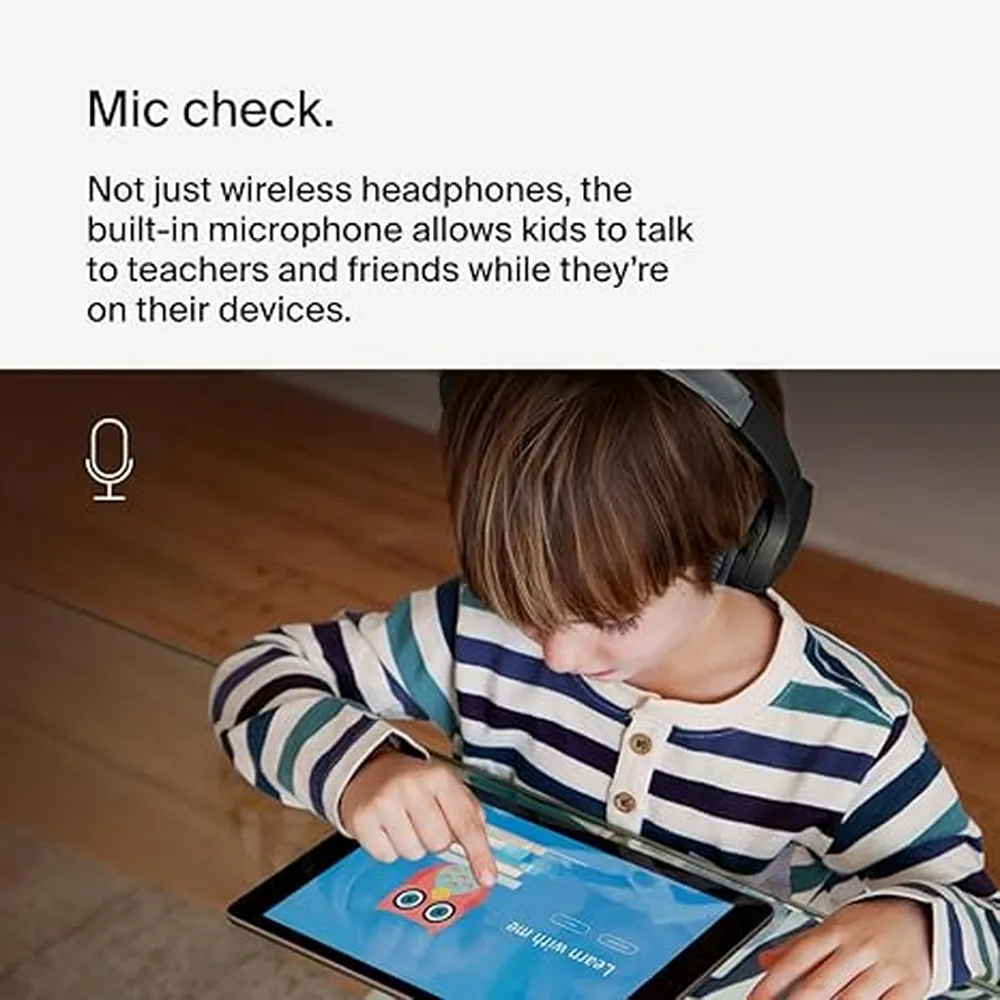 The Belkin Soundform Mini Wireless Ear Headphones are designed specifically for kids, combining safety, comfort, and fun in one compact package. With Bluetooth 5.0 connectivity, these headphones easily pair with iPhones, iPads, Galaxy devices, and more, offering up to 30 hours of continuous play. Built-in Belkin Signature Sound ensures rich audio tuned for young ears, while the 85dB volume limiter protects hearing. The lightweight, over-ear design with kid-sized cushions provides long-lasting comfort, and the integrated microphone lets children take calls or join video chats effortlessly. With intuitive touch controls and an optional 3.5mm wired connection, these headphones adapt to both wireless and wired play.