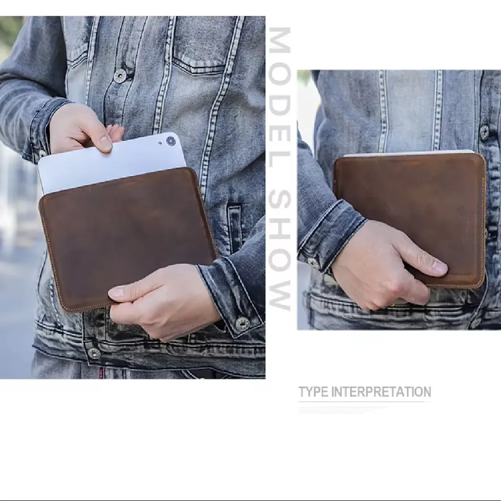 The 11 Inch Slim Cow Genuine Leather Tablet Sleeve is crafted for professionals who value both protection and style. Made from premium Crazy Horse leather, it offers a durable, scratch-resistant finish that keeps your device safe while maintaining a sleek and sophisticated look. Its slim and lightweight design makes it easy to carry, whether for business, travel, or daily use. With eco-friendly craftsmanship and OEM/ODM customization options like laser logo engraving, it’s also an excellent choice for corporate gifting or branded retail. Designed to complement modern lifestyles, this sleeve combines luxury with practicality in one essential accessory.