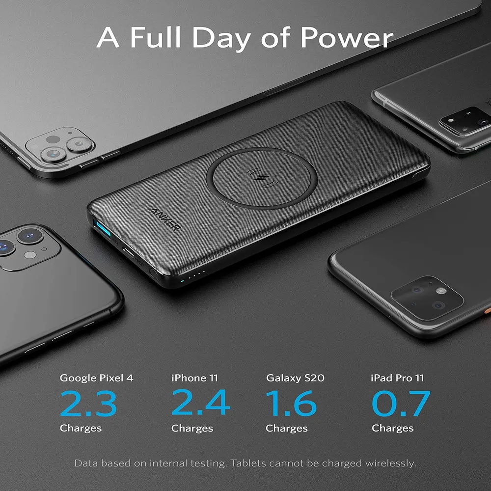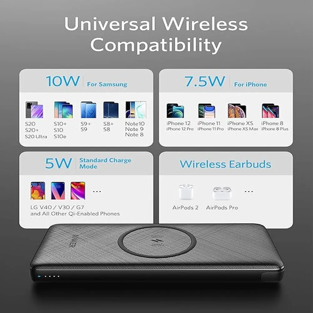 The Anker PowerCore III Sense 10K delivers the perfect mix of wireless freedom, fast charging, and sleek portability. With Qi-certified wireless charging up to 10W, it powers your phone, earbuds, or other compatible devices effortlessly on the go. Its 10,000mAh capacity ensures multiple full charges, while USB-C and USB-A ports provide fast wired charging up to 18W for a wide range of devices. You can even use it in desktop mode—charging wirelessly while the power bank itself recharges via USB-C. Compact, stylish, and reliable, this power bank is ideal for travel, work, or daily use—keeping your devices charged wherever life takes you.