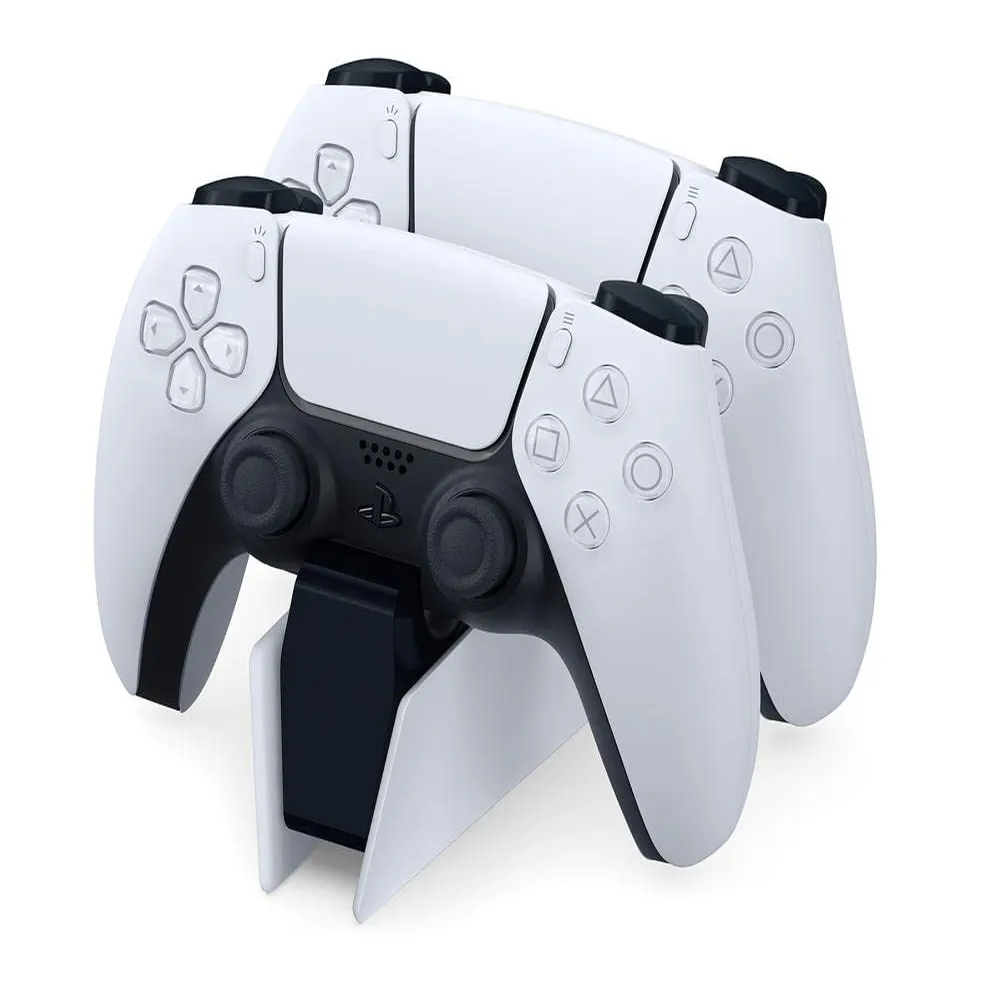 The Sony PlayStation DualSense Charging Station is the ultimate accessory for keeping your controllers ready for action. Designed with a convenient click-in docking system, it allows you to charge up to two DualSense controllers simultaneously without connecting them to your PS5 console. This frees up valuable USB ports while ensuring your controllers charge just as quickly. Its sleek, compact design makes it easy to set up and keeps your gaming area clutter-free. Perfect for gamers who want efficiency, convenience, and uninterrupted playtime.