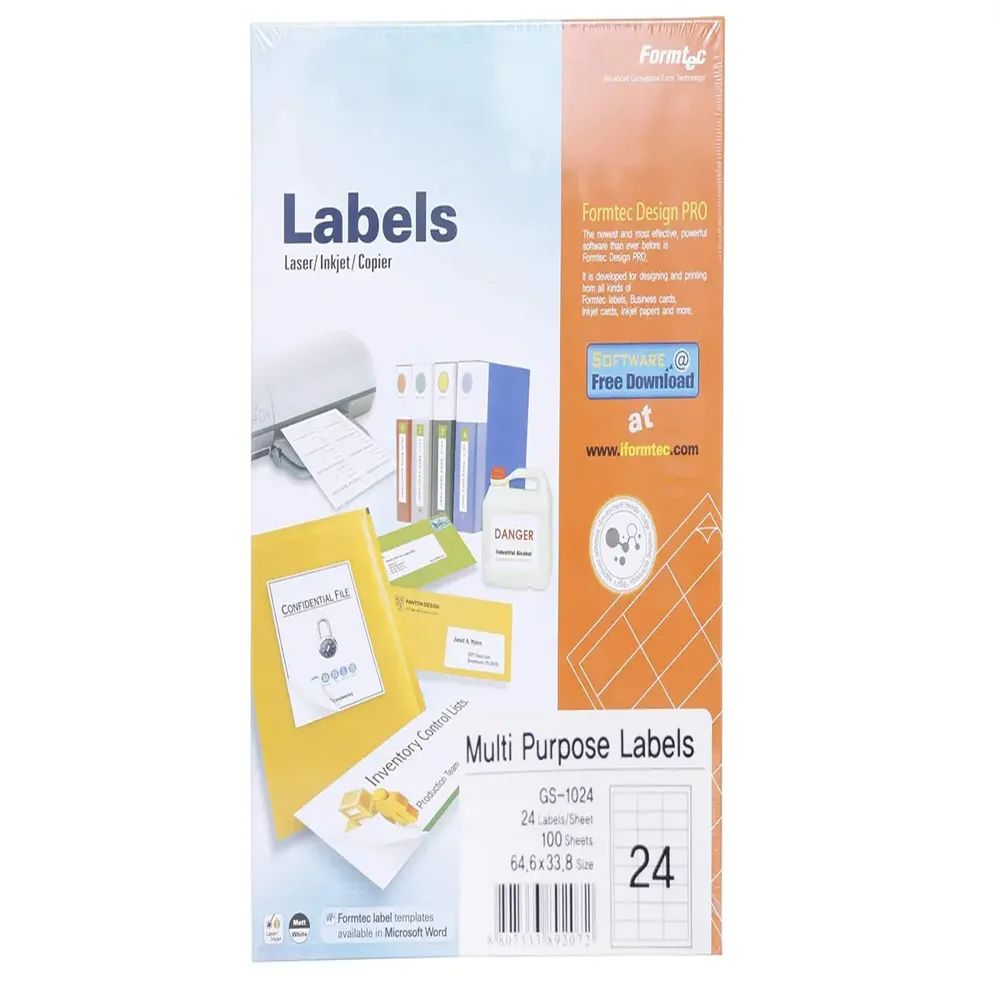 The Formtec A4 Labels are designed to deliver precision, durability, and ease of use for both personal and professional labeling needs. With 24 labels per sheet and a total of 2,400 labels per box, they offer great value and convenience for bulk use. These high-quality white labels are suitable for a wide range of purposes, including addressing, shipping, filing, and media labeling. Engineered with advanced finishing technology, they prevent printer jams, ensuring smooth and reliable operation every time. Compatible with both laser and inkjet printers, they are a versatile choice for any workspace.