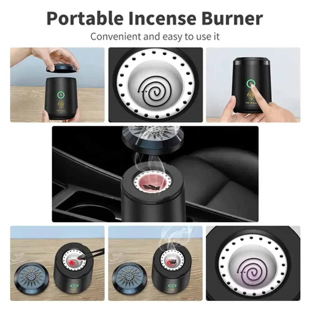 Experience the authentic aroma of traditional Bukhoor with the convenience of modern technology. This portable, rechargeable Bukhoor Mini Oud Incense Burner heats incense chips to charcoal-level temperatures without an open flame, preserving the natural high-quality scent. Its ceramic heating element ensures fast, even heating, making it safer and easier to use than traditional methods. Compact and stylish, it’s perfect for use at home, in your car, or office to refresh the air and eliminate odors. Enjoy the timeless fragrance of Bukhoor anytime, anywhere with this intelligent electric burner.