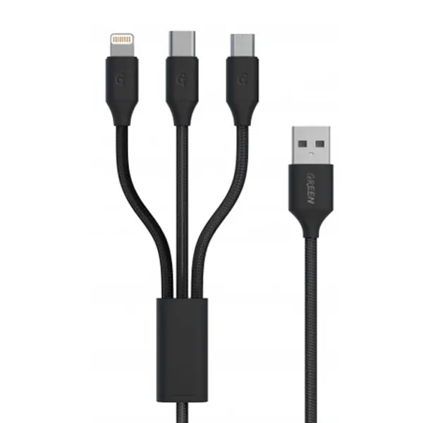 Green Lion 3in1 Fast Charging Cable 1.2M | PLUGnPOINT. Triple evaporator design and built-in intelligent shunt work to ensure the correct current is delivered to the connected devices. Withstand 5,000+ bending plugging & unplugging test. Compatible with any charging adaptor, multi-port charging station, or power bank.
