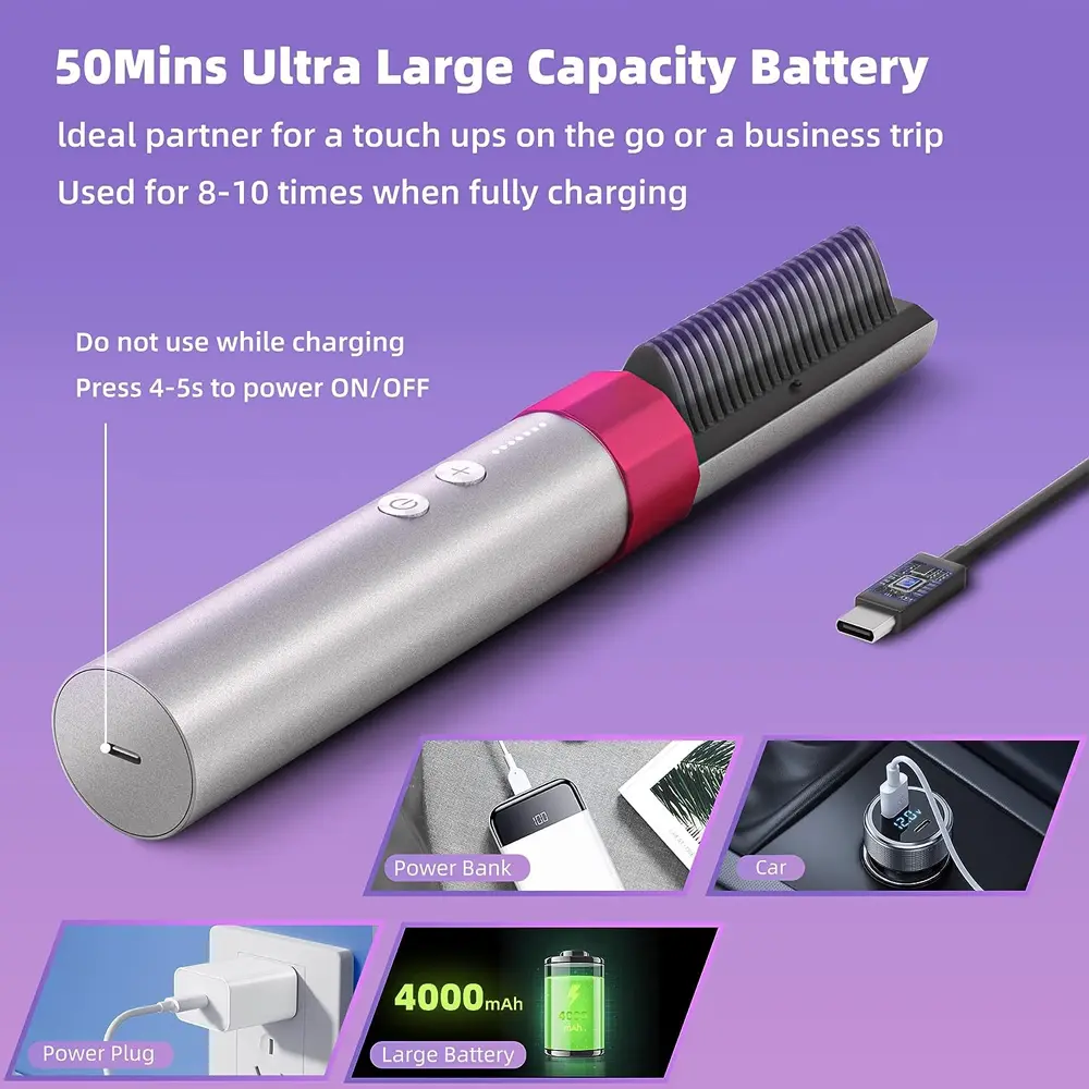 Transform your hair anytime, anywhere with the K-Skin KD382—a cordless 2-in-1 straightener and curler brush designed for styling flexibility and healthy hair care. Powered by fast-heating PTC ceramic elements and enhanced with 60 million negative ions, this sleek tool smooths, styles, and protects in one go. From soft curls to sleek straight styles, achieve your look with salon-quality ease—at home or on the go.