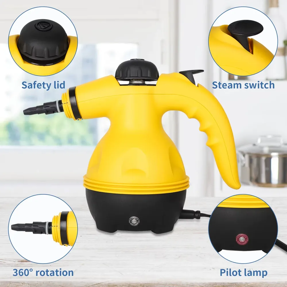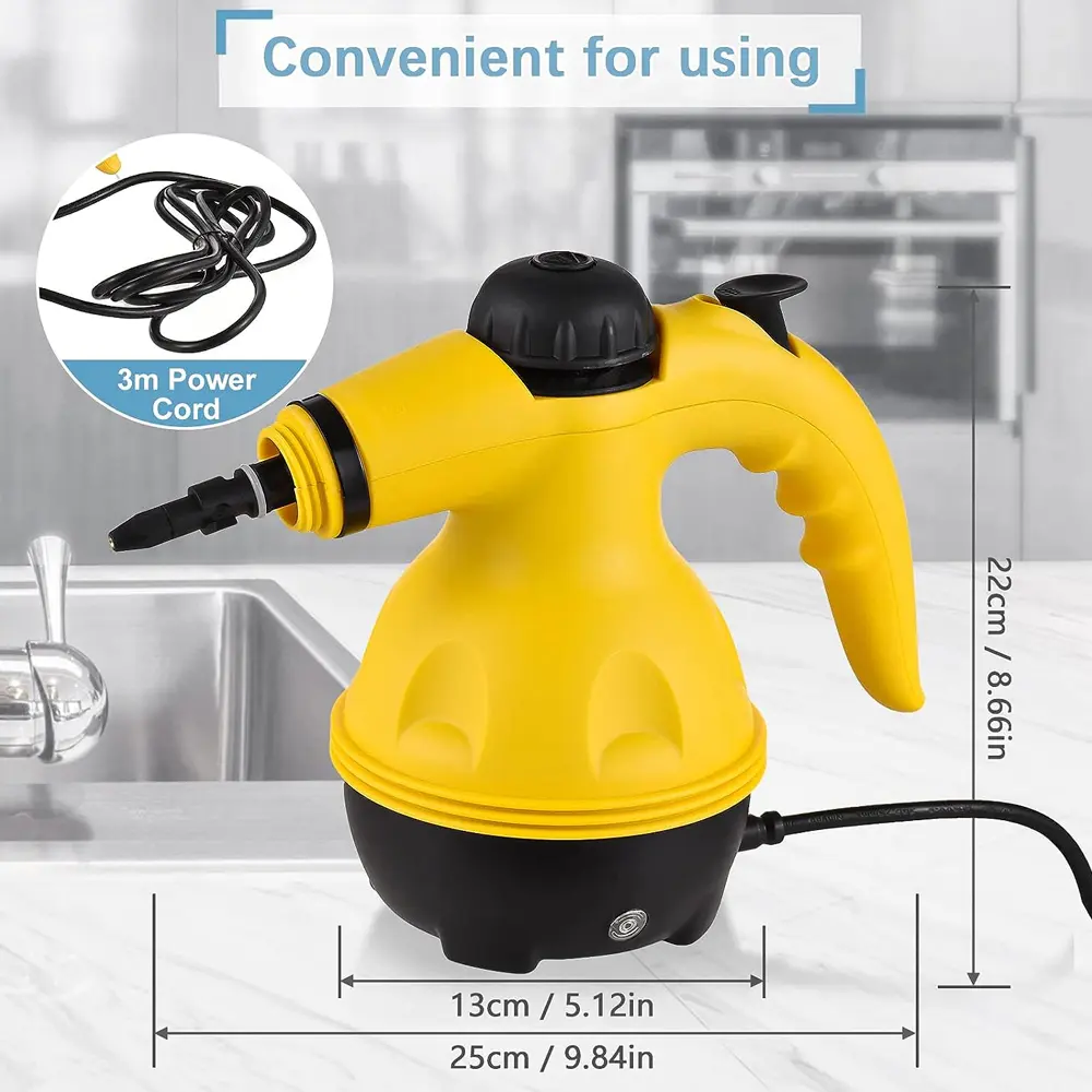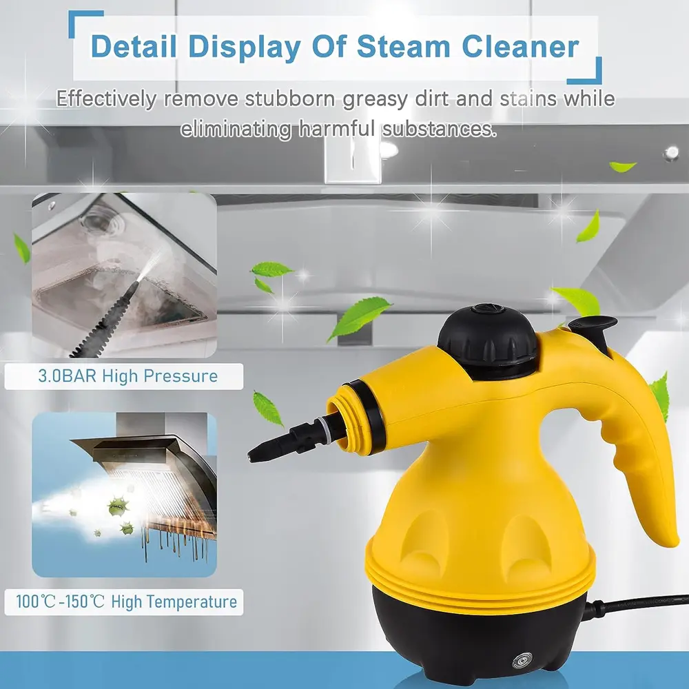 Tackle tough dirt and grime with ease using the powerful 1000W Handheld Steam Cleaner, designed with advanced Japanese technology. This lightweight, multi-purpose steamer uses high-pressure, high-temperature steam to clean effectively—without harsh chemicals. It comes equipped with 9 different nozzle attachments, making it ideal for a wide range of household tasks, from sanitizing bathroom tiles to cleaning glass windows. With a 3-meter power cord and 350ml water tank, you’ll enjoy extended reach and uninterrupted cleaning sessions.
