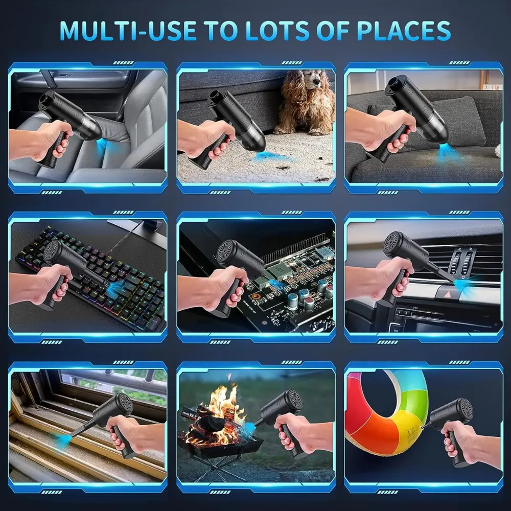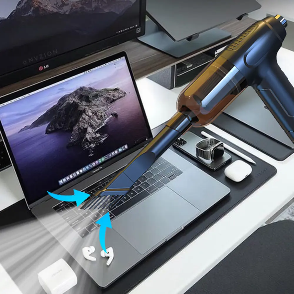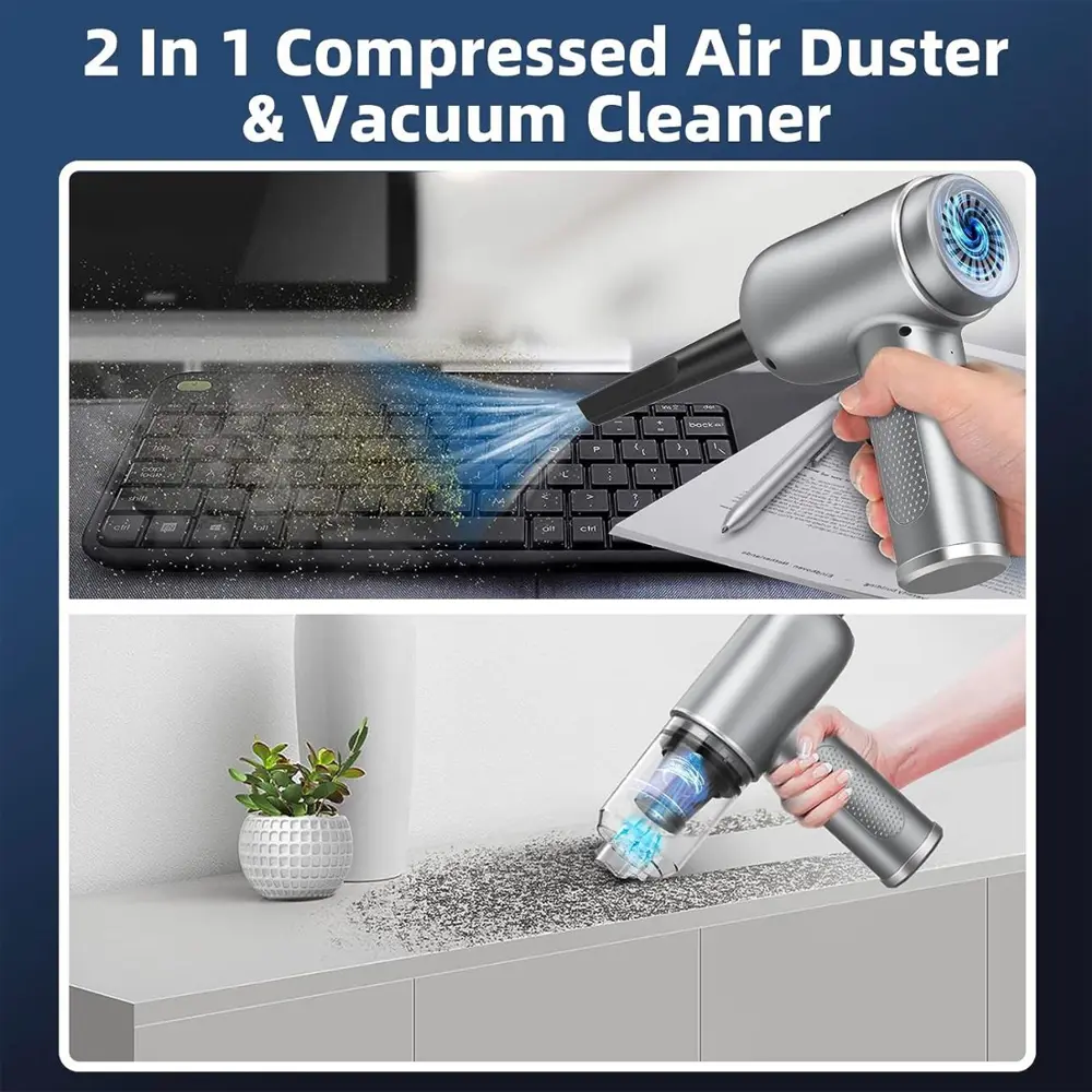 The Green Lion 2-in-1 Wireless Vacuum Cleaner & Dust Blower is a versatile cleaning tool designed for fast, efficient, and cordless cleaning. With dual 1800mAh batteries and a powerful 5000Pa suction, it easily tackles dust, crumbs, and debris in cars, homes, and offices. Its dual-function design allows you to switch between vacuuming and blowing, while the high-speed 42,500 RPM motor ensures thorough cleaning in seconds. Lightweight, compact, and low-noise, this device provides convenience without compromising performance. Quick charging and easy storage make it perfect for daily use or on-the-go cleaning.