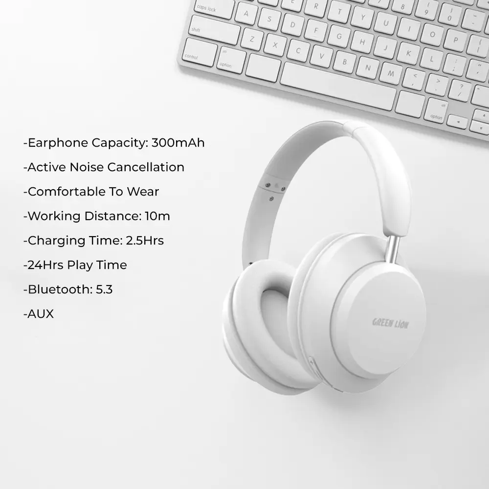 The Green Lion Santiago Wireless Headphones are here to provide you with an unmatched audio experience. With a 300mAh battery, it offers an amazing 24 hours of playback on just 2.5 hours of charging, allowing you to listen to music all day with no worries.