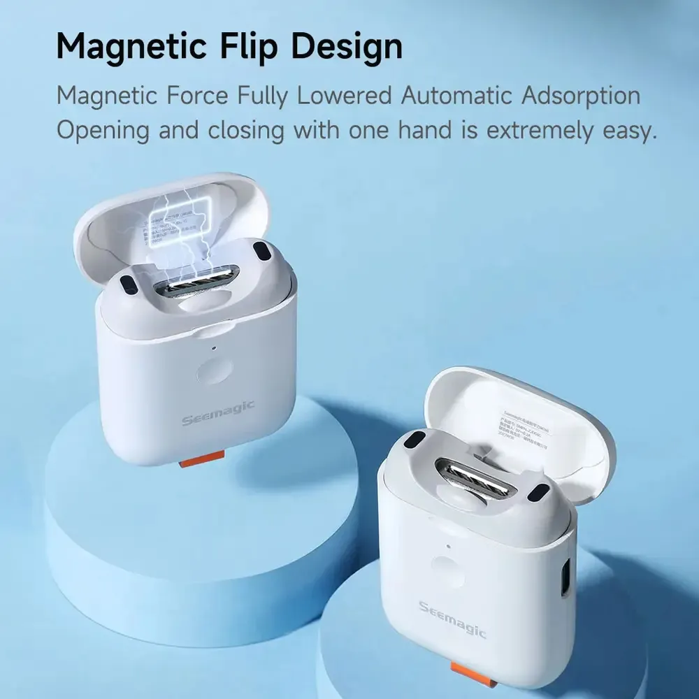 The Seemagic Electric Nail Clipper Mini offers a convenient and safe way to groom your nails with precision. Its one-button automatic pruning makes nail trimming effortless, while the compact design ensures it’s easy to carry and use anytime. Equipped with Type-C charging, it provides long-lasting power, so you won’t have to worry about frequent recharges. With a crumb storage feature, it keeps clipping mess contained for a cleaner experience. Designed with safety protection, low vibration, and a quiet operation, it’s perfect for use even at night.