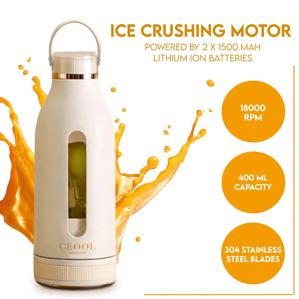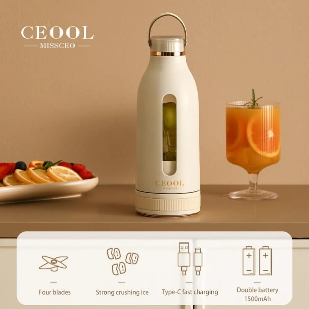 Enjoy fresh smoothies and juices wherever you go with the Ceool Portable Mini Juicer. Designed for convenience and performance, this compact blender features a 150W motor and durable stainless steel blades that can crush fruits, vegetables, and even ice in just 15 seconds. With a 360ml BPA-free bottle and built-in 1500mAh rechargeable battery, you can blend up to 6 times on a single 3-hour charge—perfect for fitness lovers, busy professionals, or travel enthusiasts. Its waterproof USB Type-C port and sleek, spill-proof design make it an excellent companion for gym bags, road trips, or small kitchens.