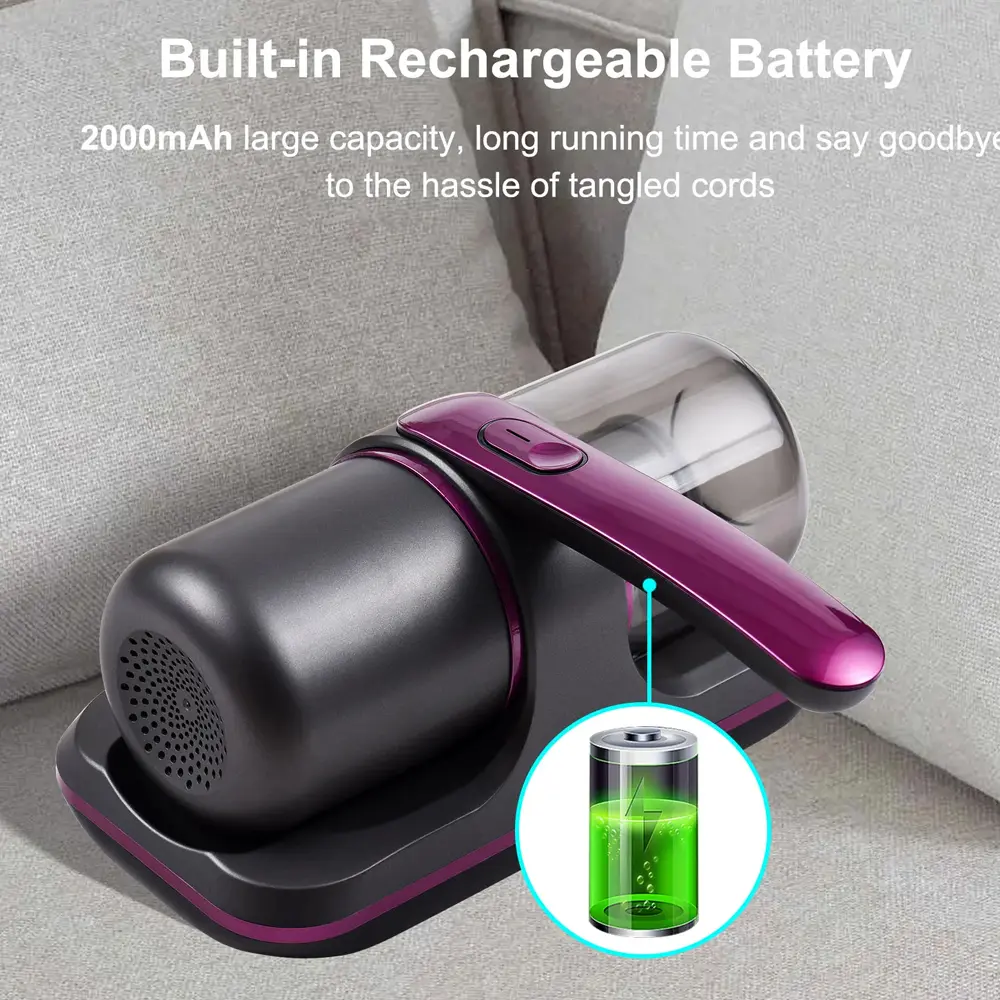 The Eccomum Cordless UV Vacuum Cleaner is your go-to solution for cleaner, healthier sleep environments. Designed with a powerful 100W motor and 8000Pa suction, it effectively targets dust mites, pet dander, and allergens on beds, upholstery, and soft furnishings. The built-in UV light enhances sanitization, while the dual-speed settings let you customize the cleaning intensity. Compact, cordless, and lightweight, it's perfect for hassle-free deep cleaning at home or on the go.