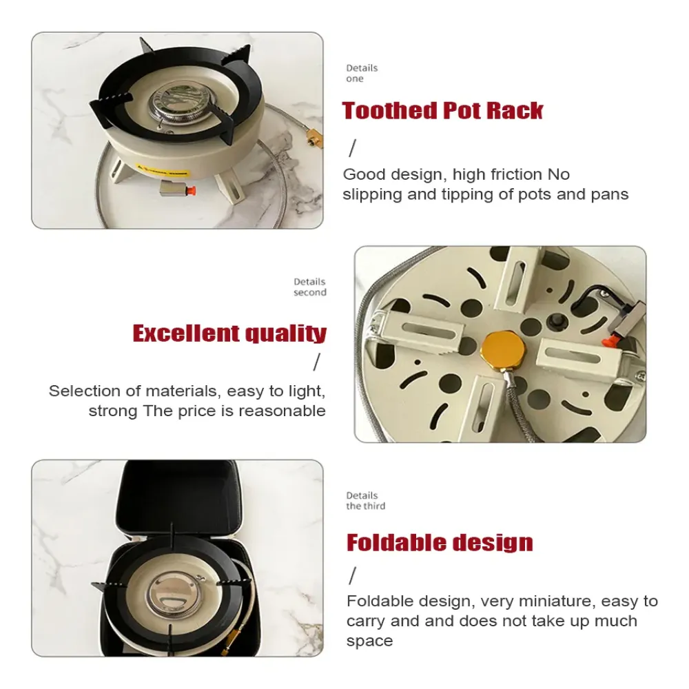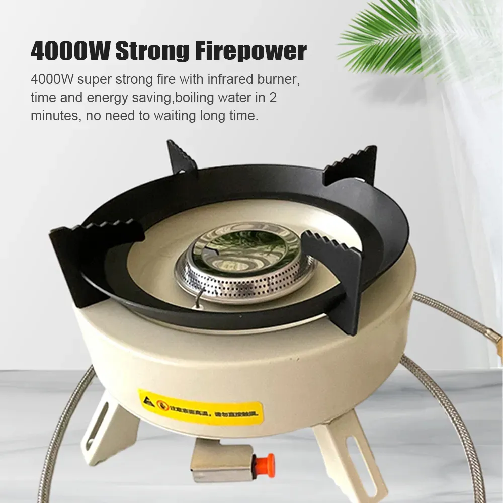 Is a compact and efficient solution for outdoor cooking enthusiasts. Designed with a windproof card-type burner head, it ensures a stable flame even in breezy conditions, making it ideal for camping, hiking, or picnics. Its durable aluminum alloy body supports up to 25kg, providing a sturdy and reliable cooking surface. The stove features an infrared core for faster, more efficient heat distribution, saving both time and fuel. Lightweight and easy to carry, it offers convenience without compromising performance. Whether you're boiling, grilling, or simmering, this stove is a reliable companion for your outdoor adventures.