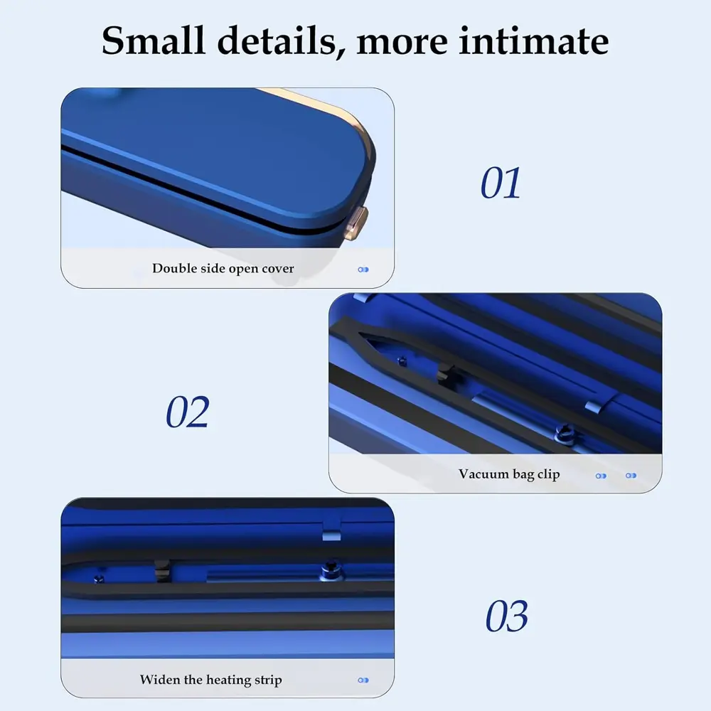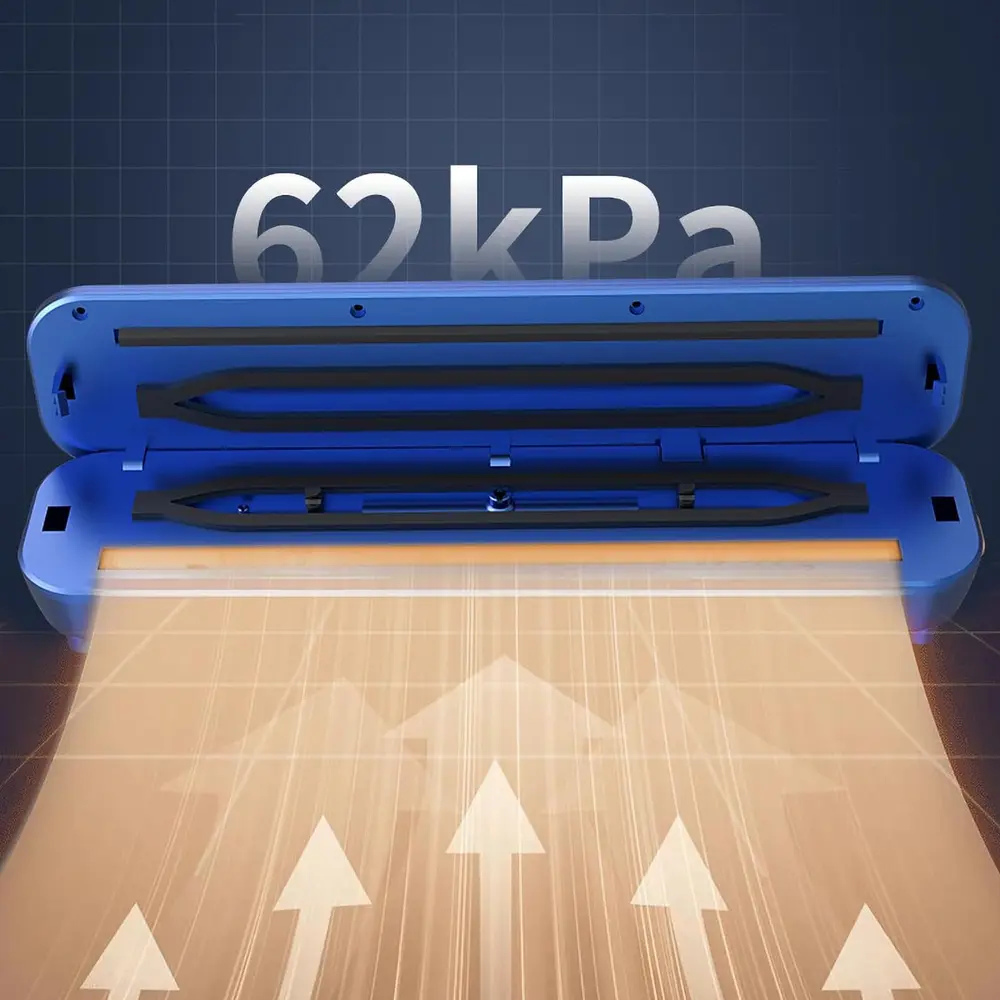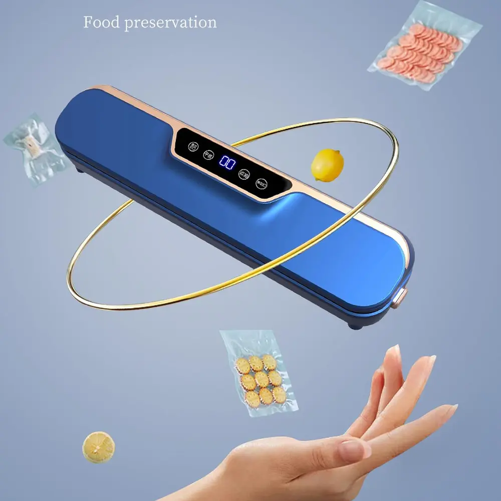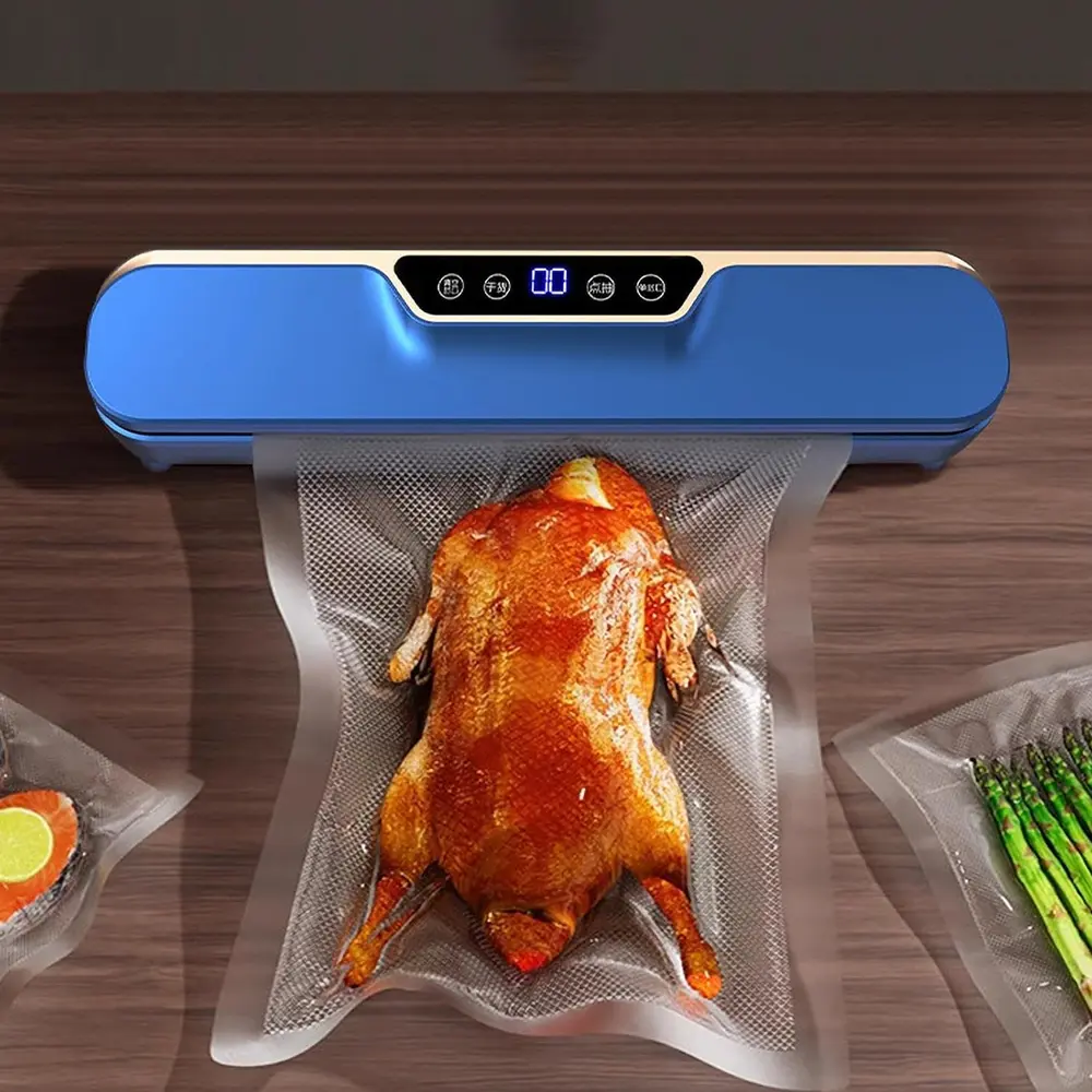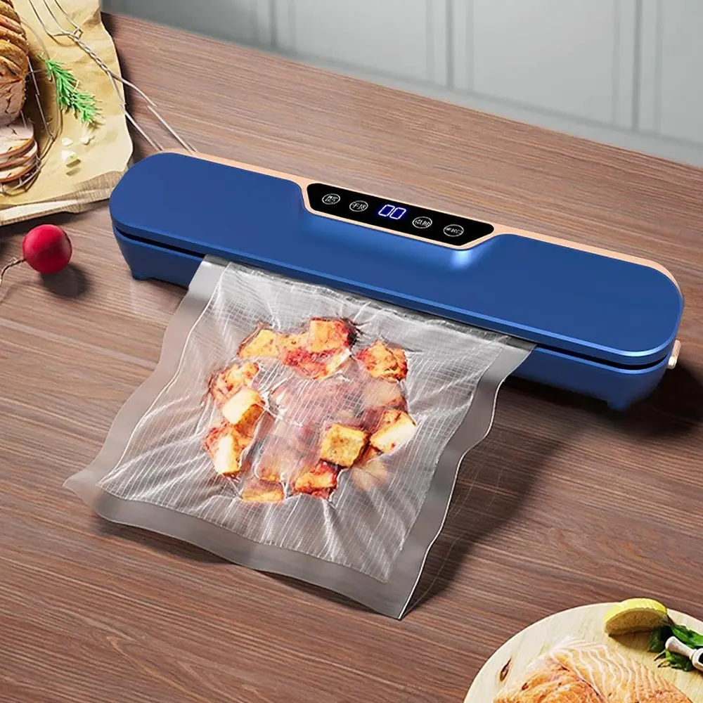 Smart solution to keeping food fresh, flavorful, and perfectly sealed. With a sleek design and an intuitive LCD screen, this compact yet powerful device makes food storage quick, easy, and efficient. It’s built with intelligent technology that adapts to seal both dry and moist foods helping reduce waste and save money. Ideal for meal prepping, bulk storage, or leftovers, it keeps food fresh up to 5 times longer than traditional methods. Its lightweight and space-saving build makes it a great addition to any kitchen. Whether you're a busy parent, health-conscious cook, or smart shopper, this vacuum sealer is designed to simplify your life.