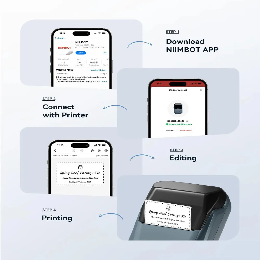 The Niimbot B1 Smart Portable Label Printer offers a convenient, ink-free solution for organizing, labeling, and managing your workspace or small business. With Bluetooth connectivity and compatibility with iOS, Android, and PC, it allows quick and seamless printing from your device. Its 1500mAh rechargeable battery ensures long-lasting use, while the one-click batch import feature boosts efficiency for bulk tasks. Compact and user-friendly, this printer is perfect for labeling products, organizing home essentials, or managing office supplies with ease and precision.