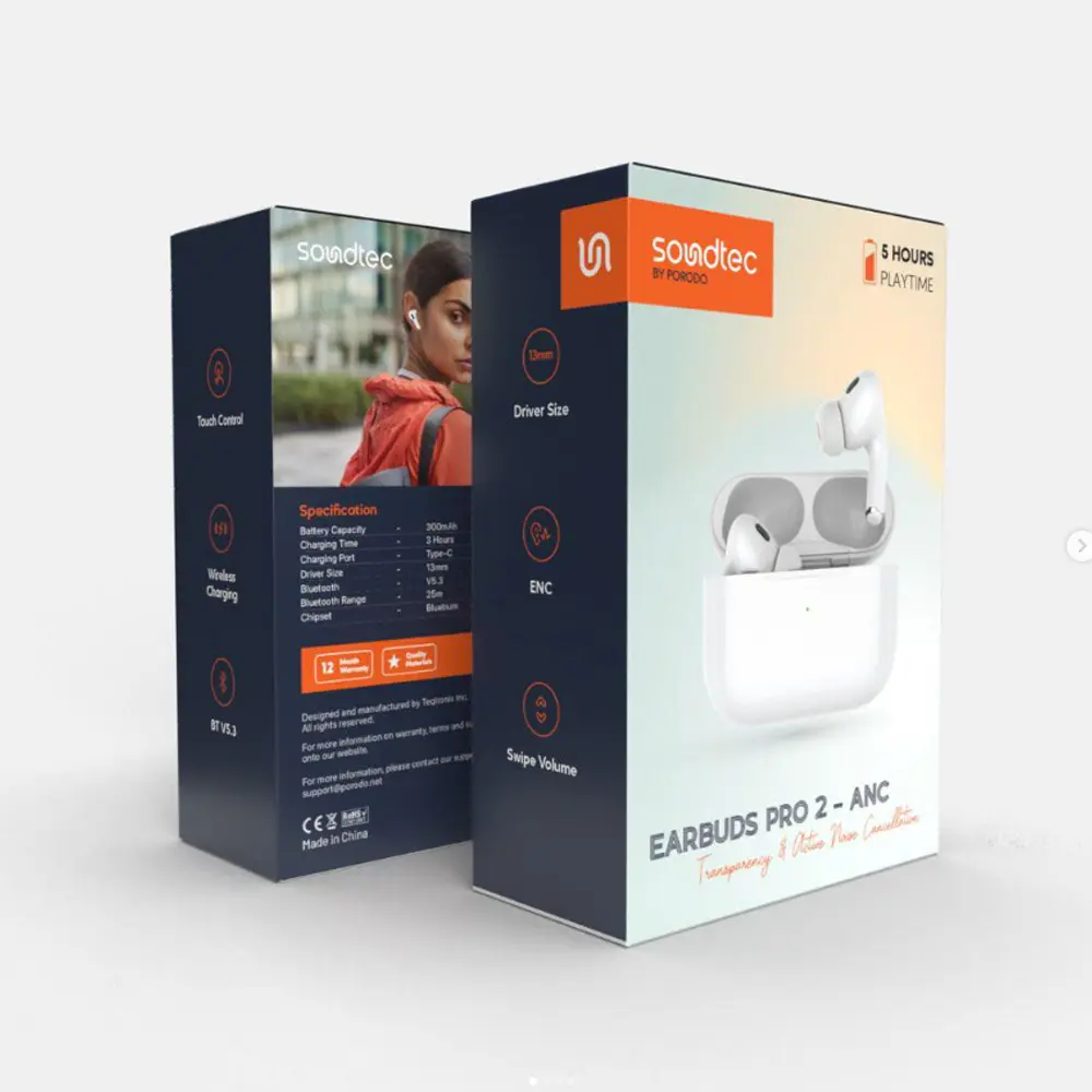 The porodo soundtec earbuds pro 2 stands out as a remarkable audio accessory, integrating active noise cancellation (ANC) for an immersive sound experience.