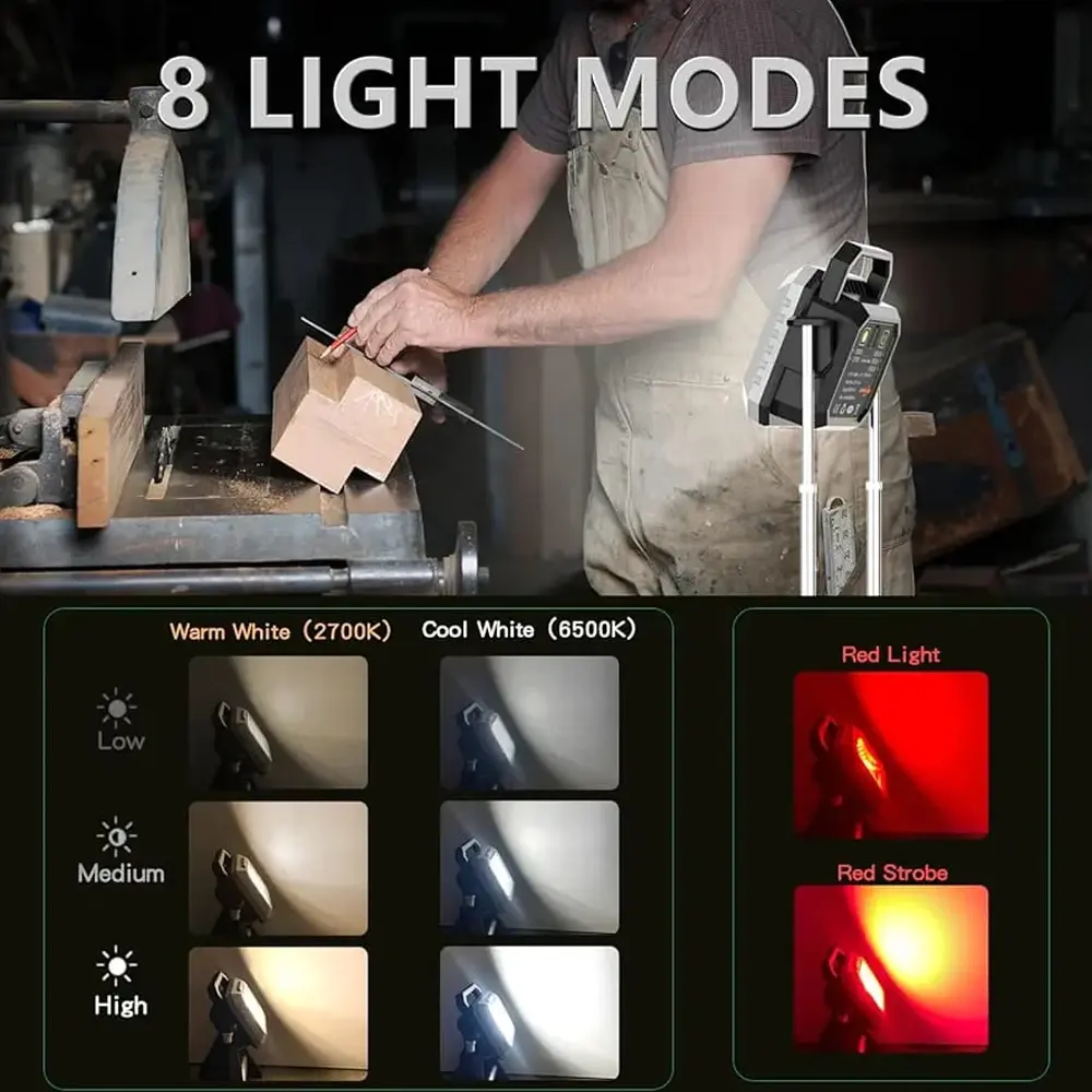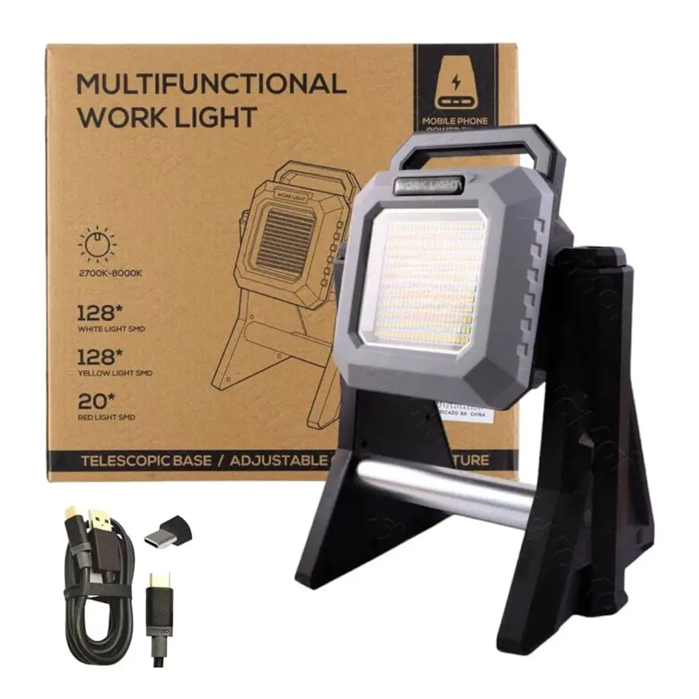The Multifunctional Work Light is the perfect companion for professionals, outdoor enthusiasts, and emergency preparedness. With its powerful 3000-lumen output and adjustable color temperature (2700–6500K), it provides bright, customizable illumination for any situation. The telescopic base and 360° swivel let you direct light precisely where it’s needed, while the built-in power bank keeps your devices charged on the go. Its durable, rechargeable design ensures reliability during work, travel, or power outages, making it a must-have tool for versatility and convenience.
