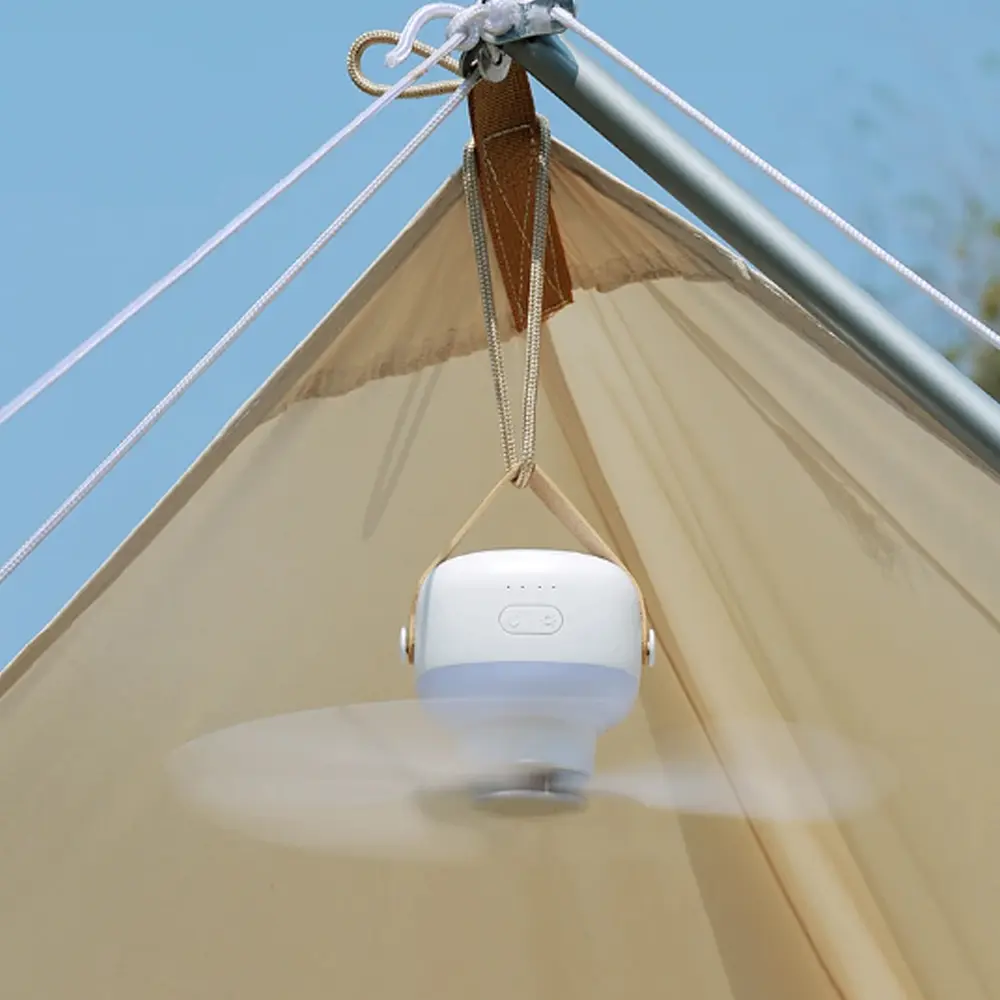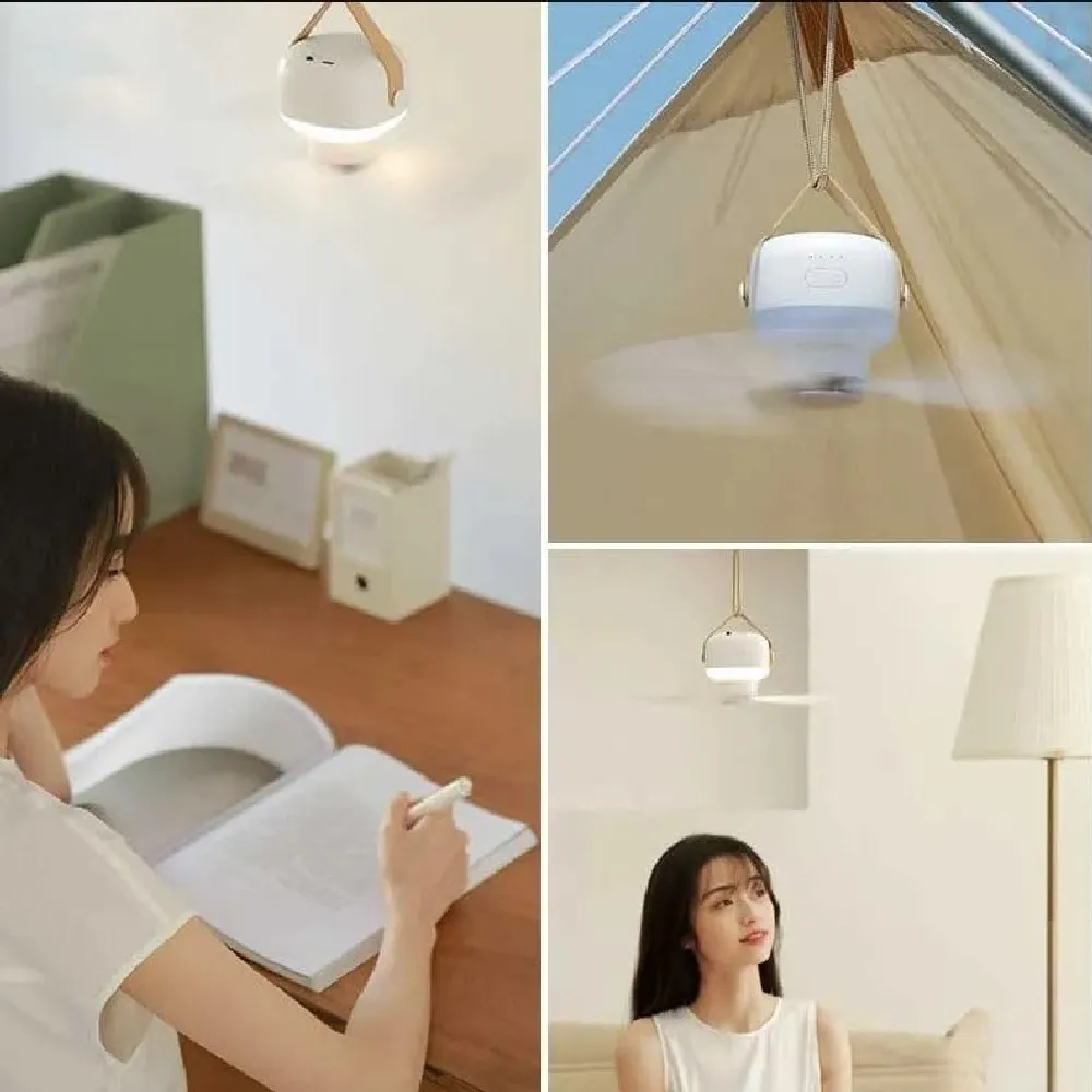 Experience flexible cooling and lighting with the Portable Ceiling Fan with Lamp, designed for both indoor and outdoor use. Its detachable design allows it to function as both a ceiling and tabletop fan, making it perfect for any environment. With four adjustable wind speeds, quiet operation, and a built-in LED light, it brings year-round comfort whether you're camping, working, or relaxing at home. The USB-powered setup and infrared remote control make it incredibly easy to use, while the long battery life ensures uninterrupted performance. Compact yet powerful, it delivers wide-angle airflow and gentle illumination wherever needed.