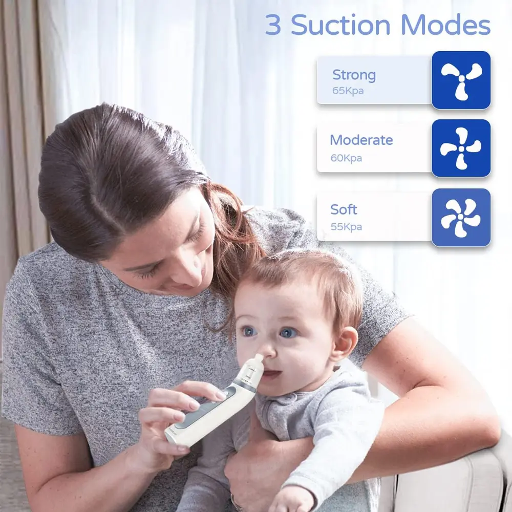 Make baby care easier and safer with the Baistom X70 Electric Nasal Aspirator, specially designed to gently clear nasal congestion in infants and toddlers. With 3 adjustable suction levels and a strong 70 kPa max suction power, it effectively removes mucus without discomfort. The soft silicone tip ensures safe use for sensitive baby noses, while ambient lights and soothing music help distract fussy little ones. Its easy-to-clean design, long-lasting battery, and portable build make it a convenient and reliable solution for parents at home or on the go.