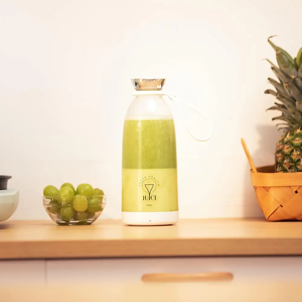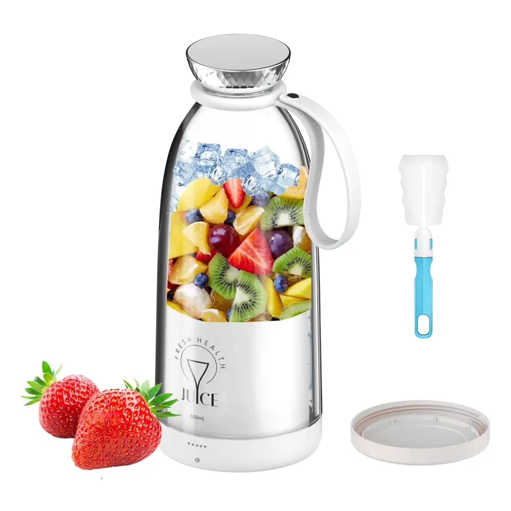 Portable Mini Fruit Blender 350ml Portable Mixer for Smoothies and Shake, Fresh Juice Mixer Bottle with Bottom Lid, 6 Blades and USB Charging Cable, Mixer to Go for Travel, Office, Camping