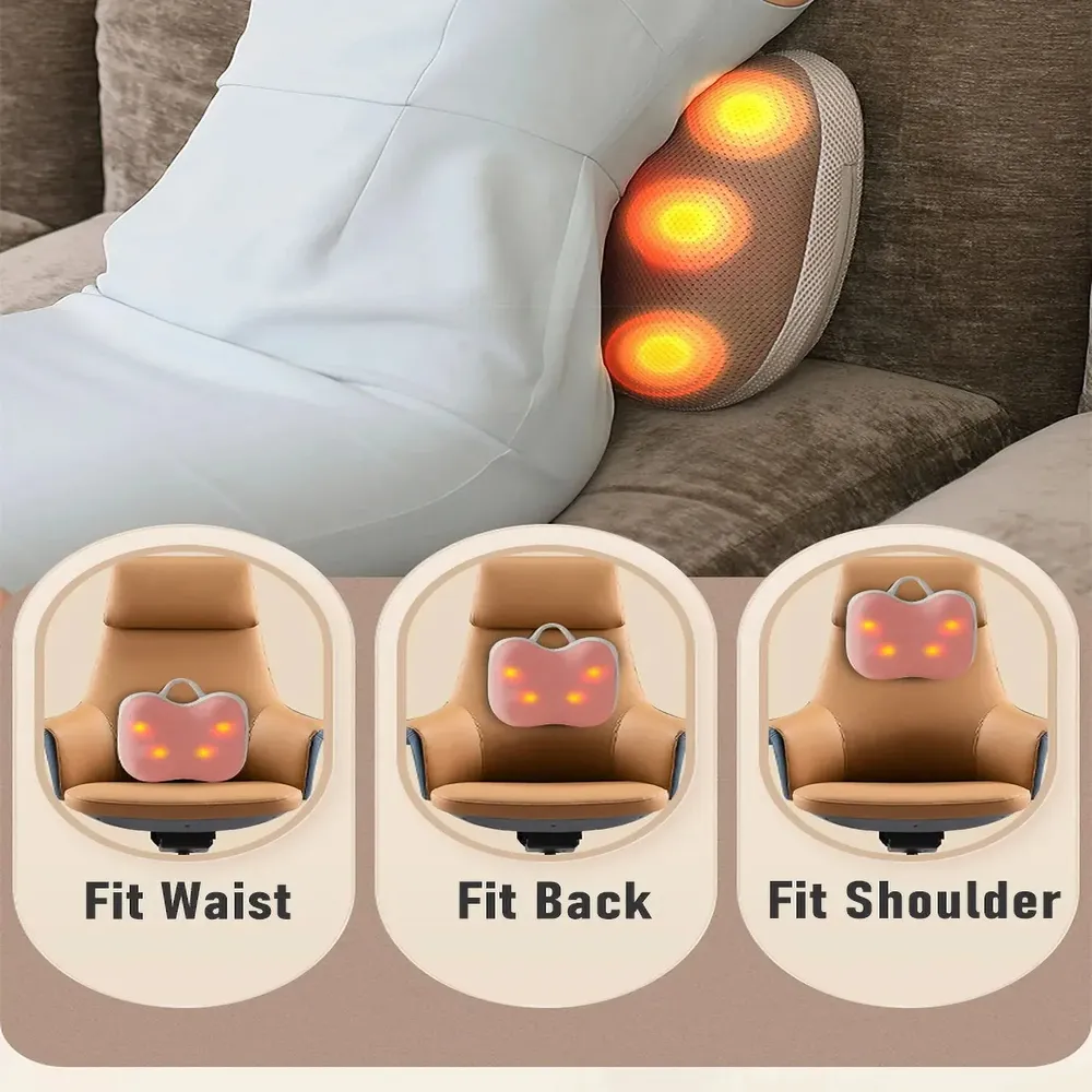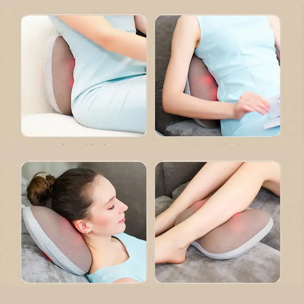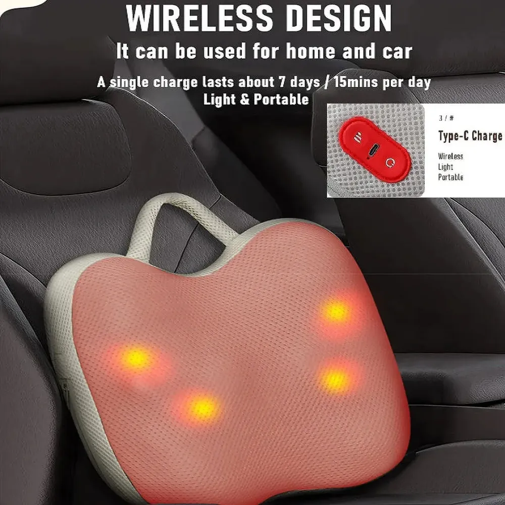 Experience full-body relaxation with the Electric Smart Massage Pillow, designed to soothe your waist, back, legs, neck, and shoulders. This wireless, multifunctional cushion features a 6-point fit and 3D massage heads that mimic real hand kneading for deep muscle relief. With a built-in 42°C hot compress, it helps improve blood circulation and ease tension in just 15 minutes. Its breathable, washable fabric and portable design make it perfect for home, office, or car use. Powered by a 2000mAh rechargeable battery and USB Type-C charging, comfort is always within reach.