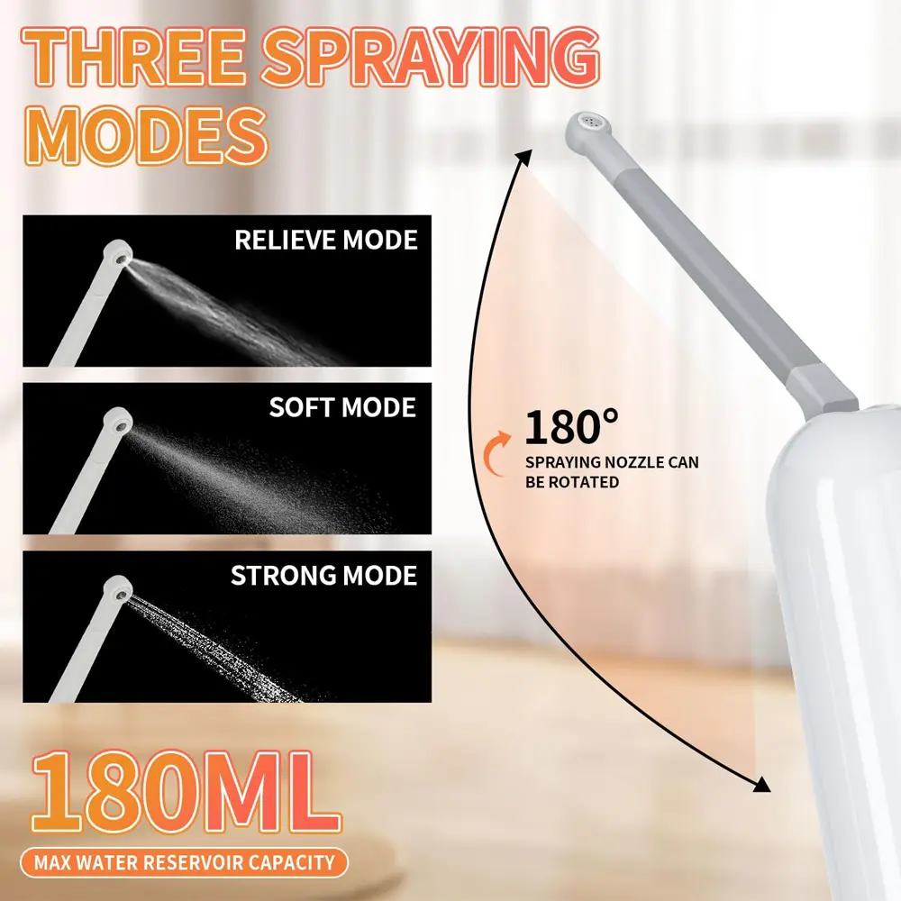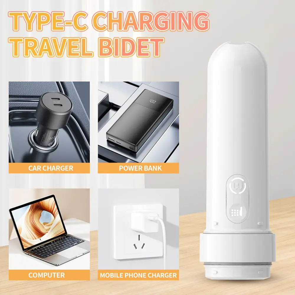 The Rechargeable Portable Travel Bidet offers a clean, comfortable, and hygienic solution wherever you go. With its compact 180ML water tank and three adjustable spraying modes, it provides customizable cleansing for personal hygiene, postnatal care, or soothing relief. Its Type-C rechargeable battery ensures quick, universal charging, while the IPX7 waterproof design guarantees safe use even in wet environments. Crafted from high-quality materials, this bidet is durable, easy to use, and perfect for travel or home use.