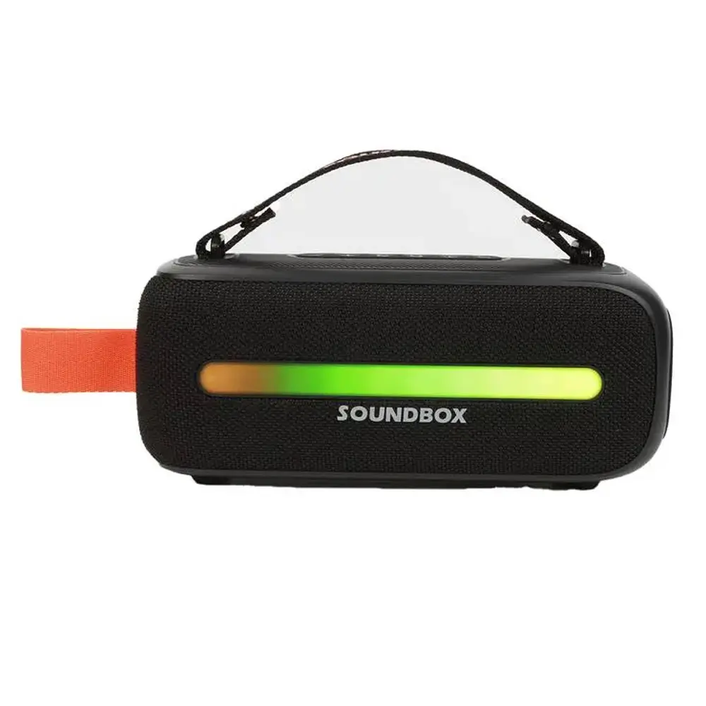 The Porodo Soundtec Speaker delivers powerful 24W sound performance, making it perfect for parties, events, and everyday entertainment. Equipped with 2.0 channel stereo sound and strong bass, it creates an immersive audio experience with rich clarity. The included wireless microphone adds versatility, making it ideal for karaoke, speeches, or hosting gatherings. With Bluetooth 5.3 connectivity and a 10m range, you can enjoy seamless pairing with your devices. Its 3600mAh battery provides up to 6 hours of playtime, while RGB lighting enhances the mood for any occasion. Designed with a sturdy build and carrying strap, this portable speaker is easy to take anywhere. Reliable, stylish, and powerful, it’s built to keep the music going.