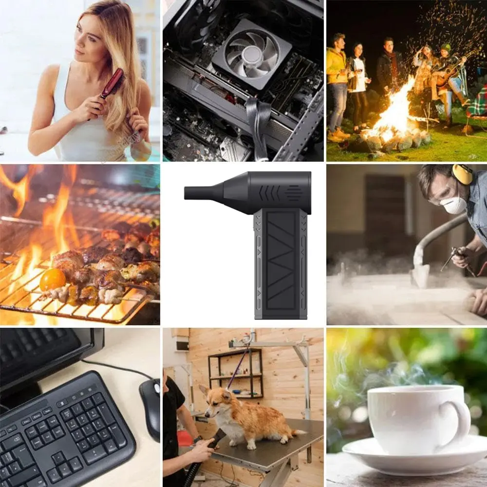 Stay cool wherever you go with the upgraded mini jet turbo fan, engineered for maximum airflow in a compact, travel-friendly design. Featuring a high-performance 130,000 RPM brushless motor, this fan provides instant, powerful cooling when you need it most. Its durable construction and pocket-sized frame make it the perfect companion for sports, outdoor activities, commuting, or even clearing dust from electronics. With a long-lasting 5000mAh rechargeable battery and adjustable wind speeds, you get the freedom to enjoy reliable cooling anytime, anywhere. Whether you're at the gym, camping, or working, this fan keeps you refreshed with ease.