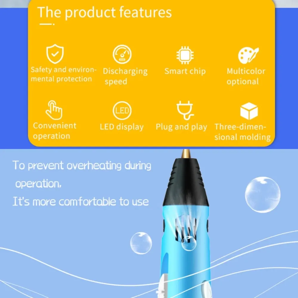 The 3D Printing Doodler Drawing Pen-2 with Speed Controller brings your creativity to life in a fun, safe, and easy way. Designed with advanced smooth gliding technology and premium, plant-based PLA filament, it ensures a clean and eco-friendly drawing experience. The adjustable temperature and speed controls give you precision for both simple doodles and detailed 3D models. Its LCD screen makes operation effortless, while the automatic sleep mode adds extra safety for kids and beginners. Whether for art, modeling, or educational projects, this pen offers an exciting blend of innovation and ease of use.