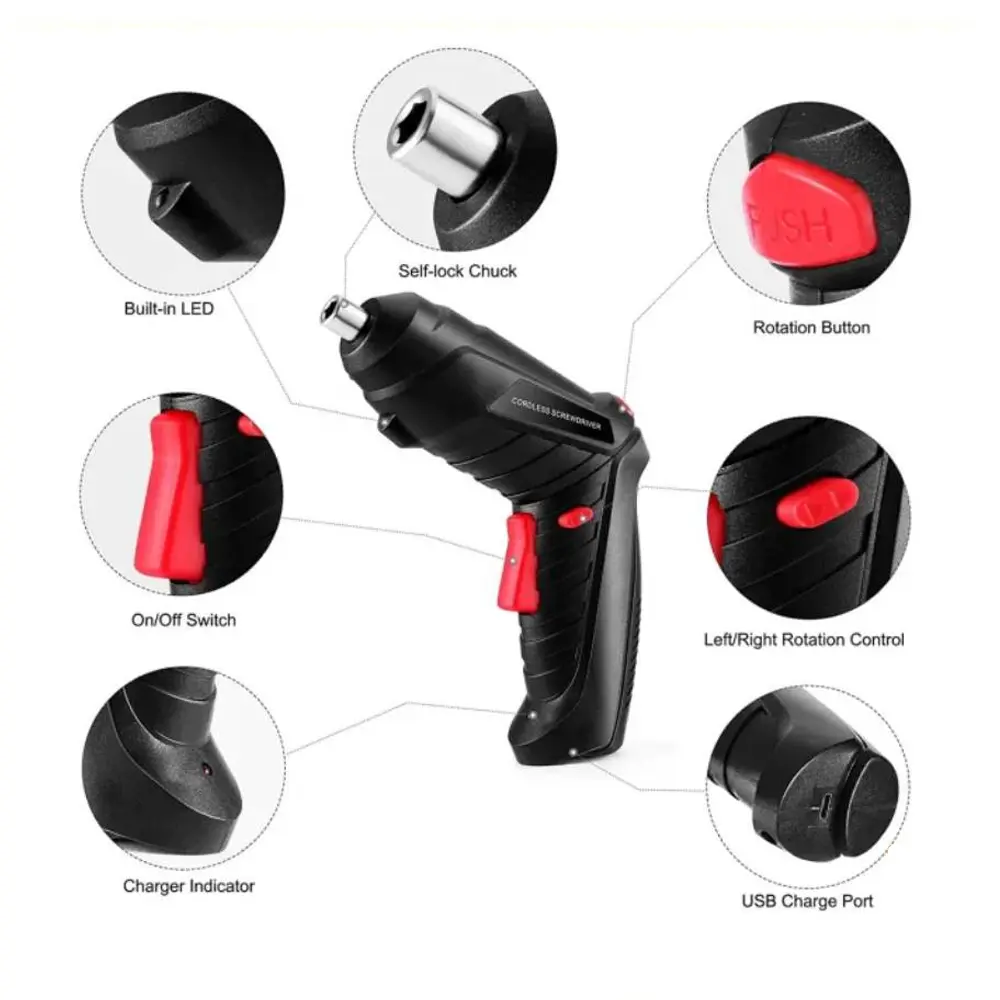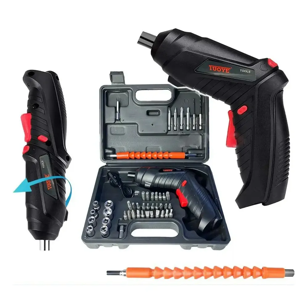 The Tuoye Cordless Electric Screwdriver is an all-in-one tool kit built for convenience and performance. With 47 accessories neatly packed in a portable toolbox, it’s perfect for tackling DIY tasks, repairs, and electronics assembly. Featuring a transformable handle and LED light, it adapts to your needs—even in tight or dimly lit spaces. The 3.6V rechargeable battery and USB charging make it a reliable, cordless solution for home or workshop use.