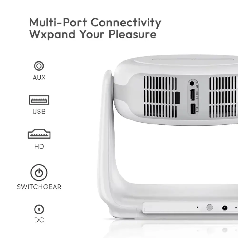 The K1 High Lumens 4K Projector delivers stunning visuals and smart features in a compact, portable design. Powered by Android 11.0 and ZEASN Whale OS, it offers seamless app access and streaming, making it ideal for home theaters, classrooms, and business meetings. With 4K resolution support and a powerful LED lamp boasting a 50,000-hour lifespan, you get bright, clear images every time. Its 260° rotating bracket ensures flexible placement, while built-in Wi-Fi and HDMI ports provide versatile connectivity. The onboard stereo speaker completes the package for an immersive audiovisual experience on the go.
