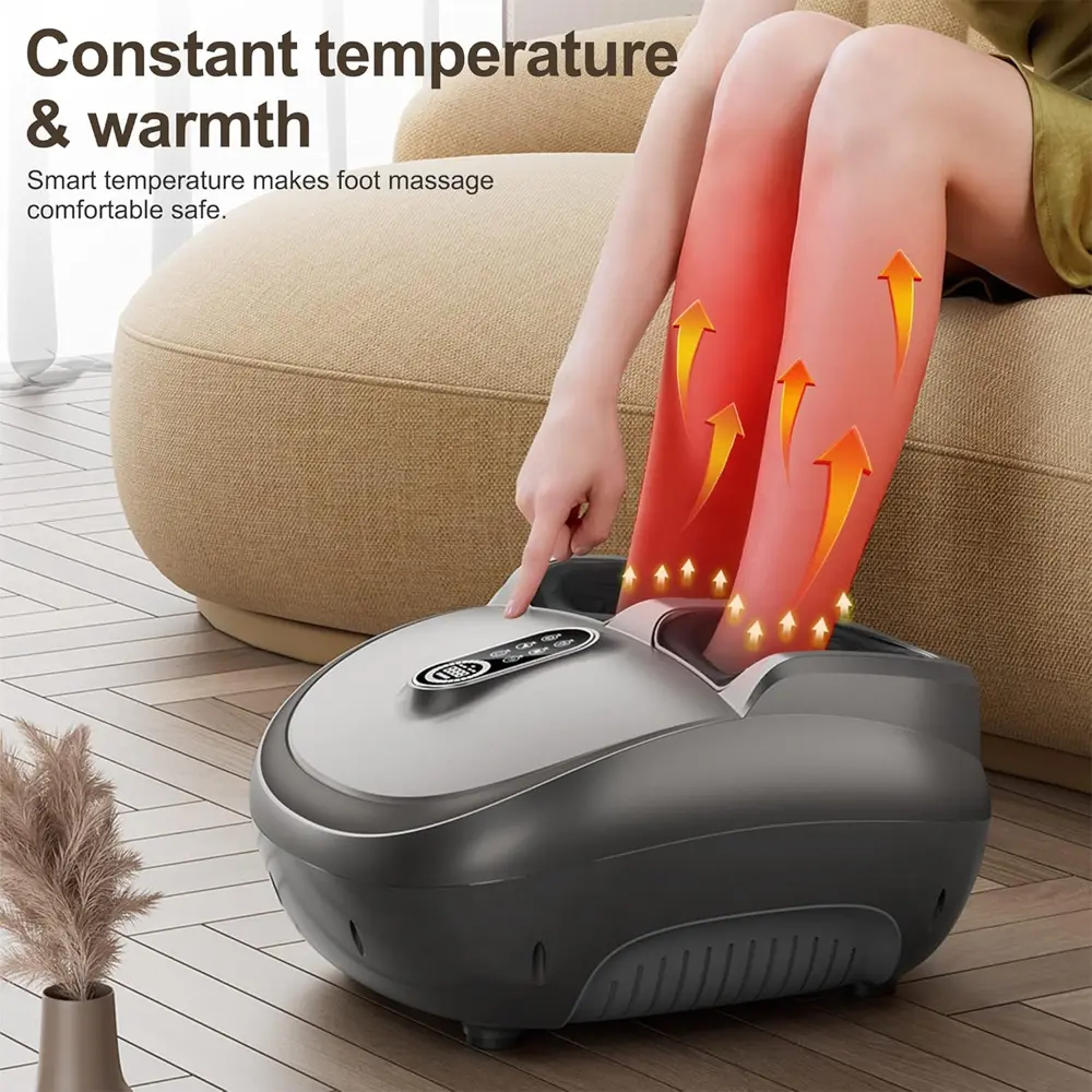The 8D Intelligent Foot Massager offers advanced foot and calf therapy combining in-depth acupressure and infrared rolling to provide comprehensive relief for tired legs and feet. Designed especially for elderly users, it delivers deep pressure massage through 12 sets of airbags that simulate professional techniques. The device features a smart LCD touch control panel and wireless remote control for easy operation. Its ergonomic design ensures comfort, while constant temperature and warmth promote better blood circulation and relaxation. This foot spa machine is perfect for rejuvenating sore muscles and improving overall foot health.
