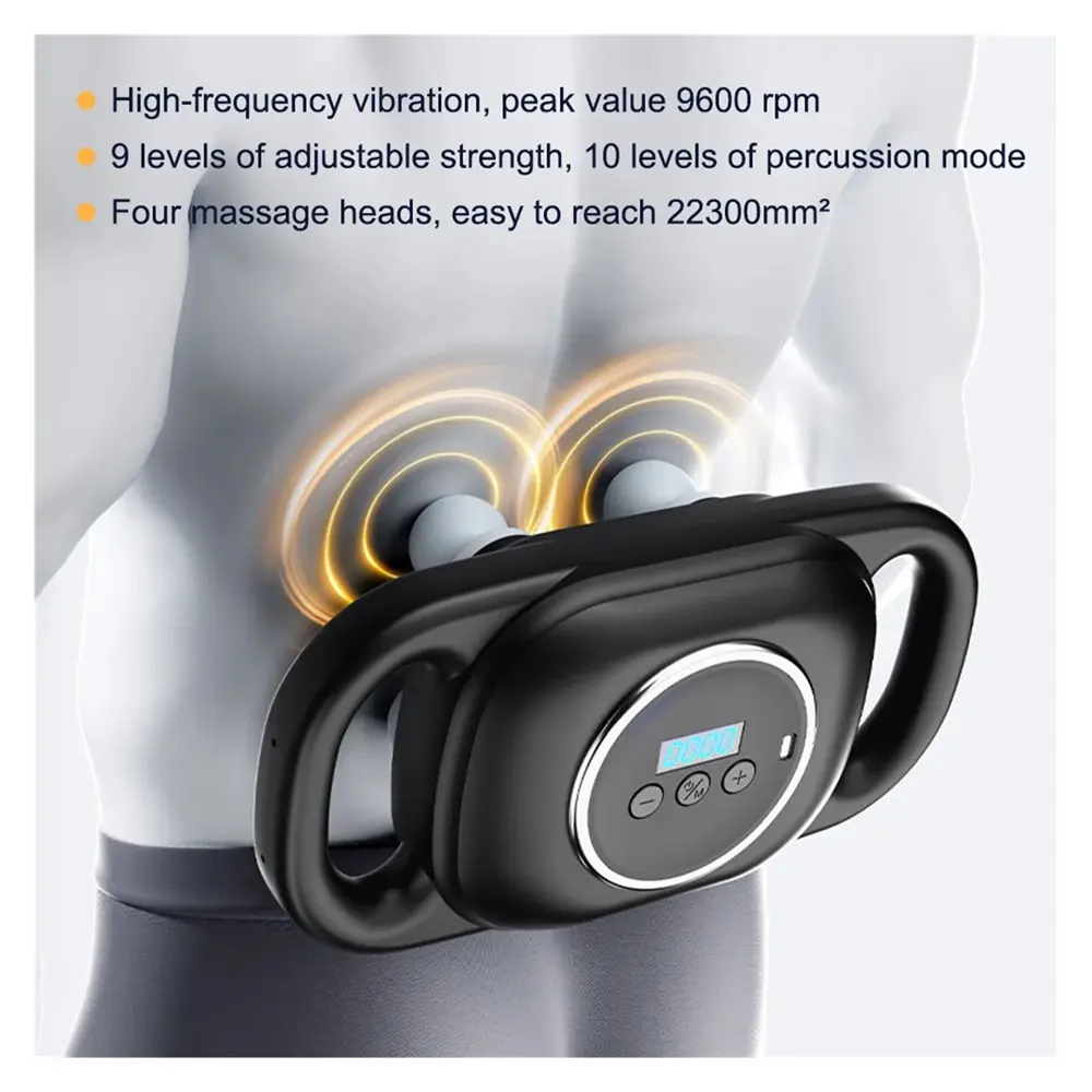 The Portable Fascia Gun offers strong power with a double suction structure for deep muscle relaxation and pain relief. Equipped with pressure sensing technology, it adjusts the strength of each impact in real time for an effective and comfortable massage. Its low-decibel silent noise reduction allows a quiet experience, making it practical for use on multiple body parts. With 9 modes and 10 intensity levels, plus four interchangeable heads, this massager is customizable to your needs. Powered by a rechargeable 1000-1200mAh battery, it delivers cordless convenience and portability.