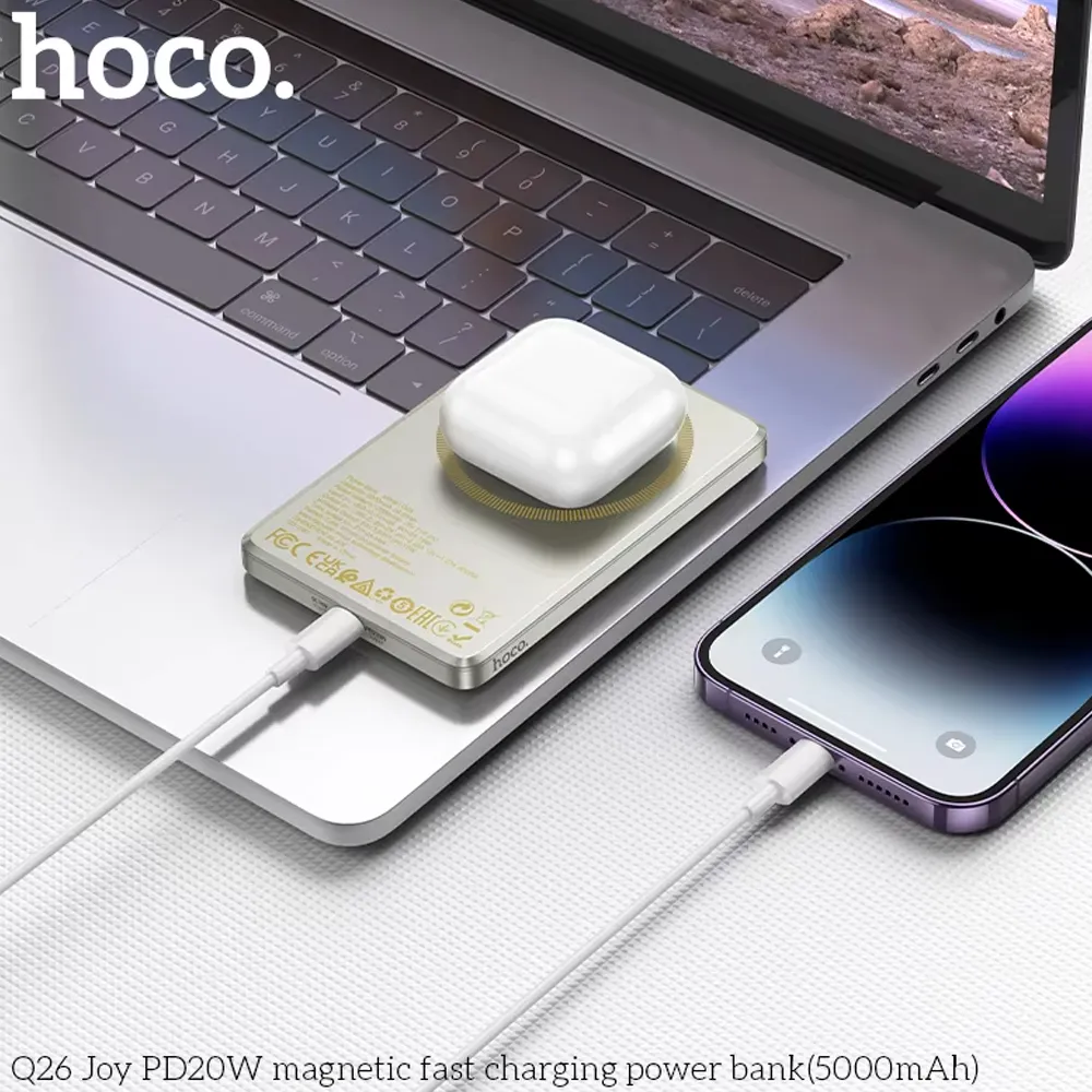 Hoco Power Bank Magnetic Charge 10000mAh, Type C Interface, Fast Charging, Wireless Charger, Portable 20W Output Power.