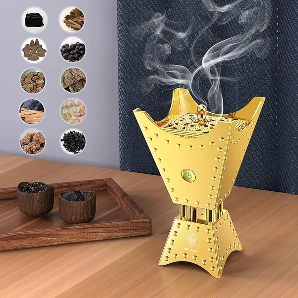 The Oud Bukhoor BK-32 Incense Burner brings tradition and modern technology together for a luxurious aromatic experience. Designed to heat bakhoor or oud evenly, it quickly releases rich, soothing fragrances that fill your space with elegance and calm. With a 2000mAh rechargeable battery and Type-C fast charging, it’s perfect for home, car, office, or travel use. Its compact yet durable design, paired with quiet operation and smart safety features, makes it an ideal choice for daily relaxation or special occasions.