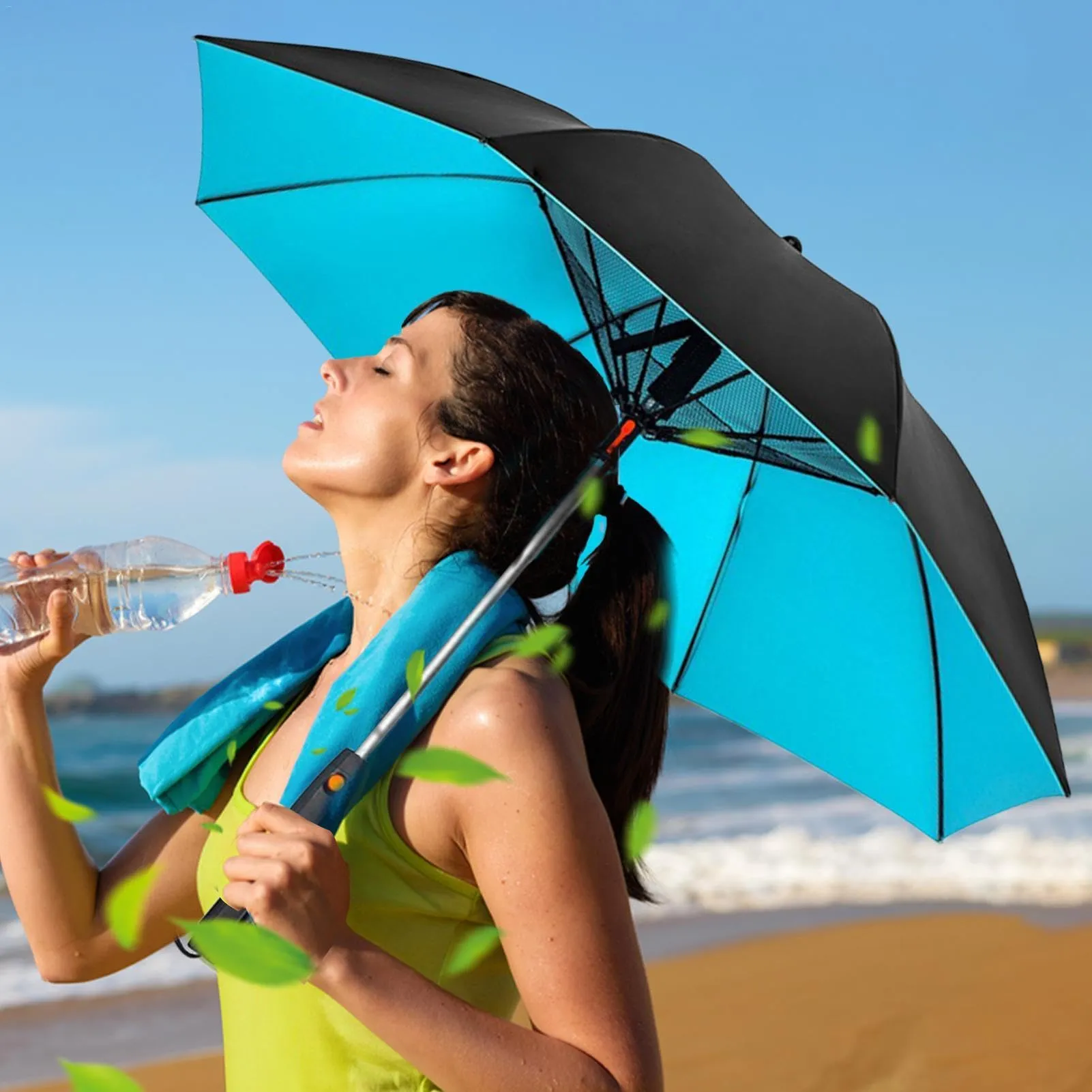 The Electric Cooling Fan Umbrella with Water Spray is a smart solution for staying cool and protected outdoors. With its UV-protected canopy and waterproof pongee fabric, it shields you from harmful sun rays and unexpected rain. The innovative built-in fan and water spray system provide instant relief from the heat, making it perfect for summer outings, beach trips, or outdoor events. Designed with a semi-automatic open and manual close mechanism, it’s easy to use and carry. A detachable water bottle adds extra convenience, ensuring you can stay refreshed on the go. Stylish, practical, and highly functional, this umbrella is a must-have for sunny and hot climates.