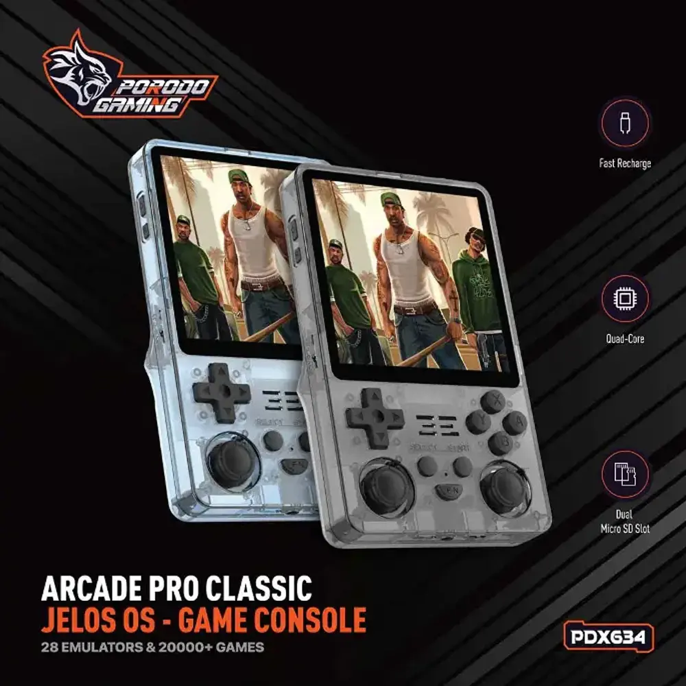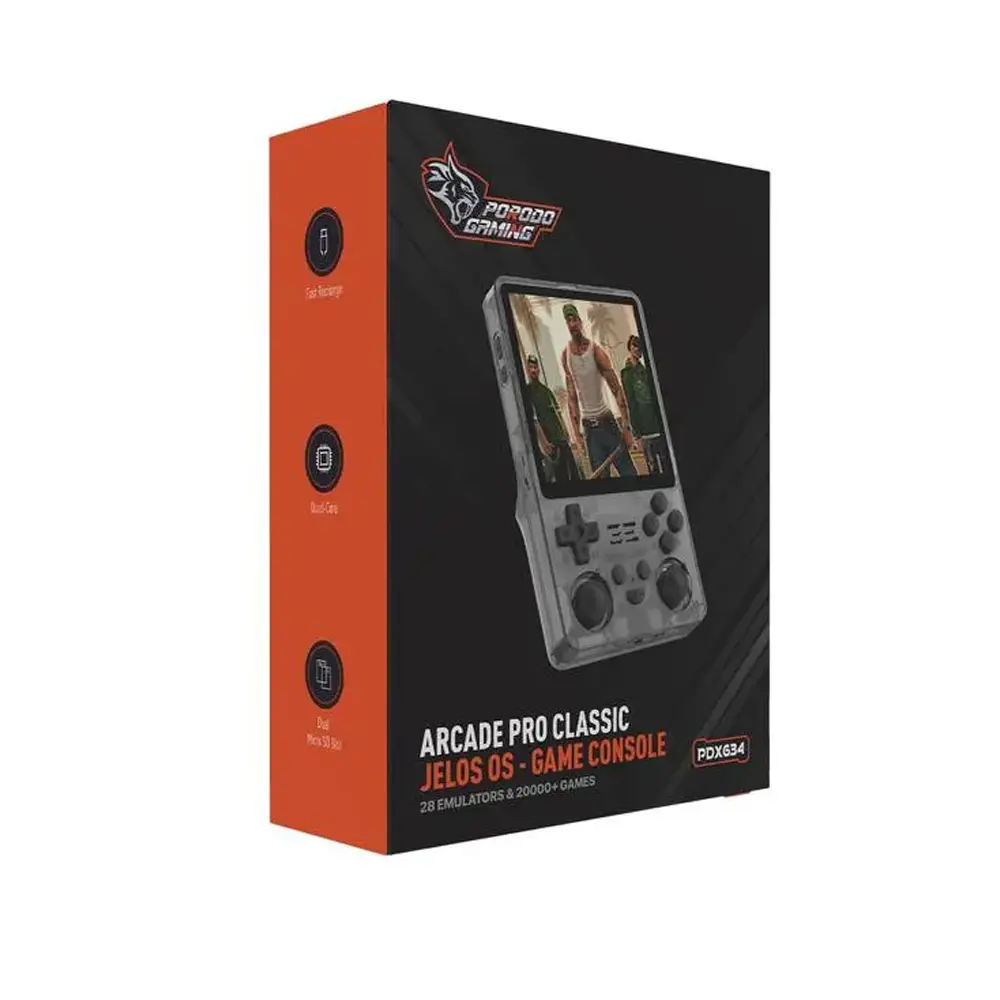 The Porodo Gaming Arcade Pro Classic JELOS OS Portable Game Console in Black is a powerful, multipurpose handheld for fans of vintage games. It has a powerful 5000mAh battery that can run the device for up to 10 hours on a single charge, taking only 2.5 hours to charge.