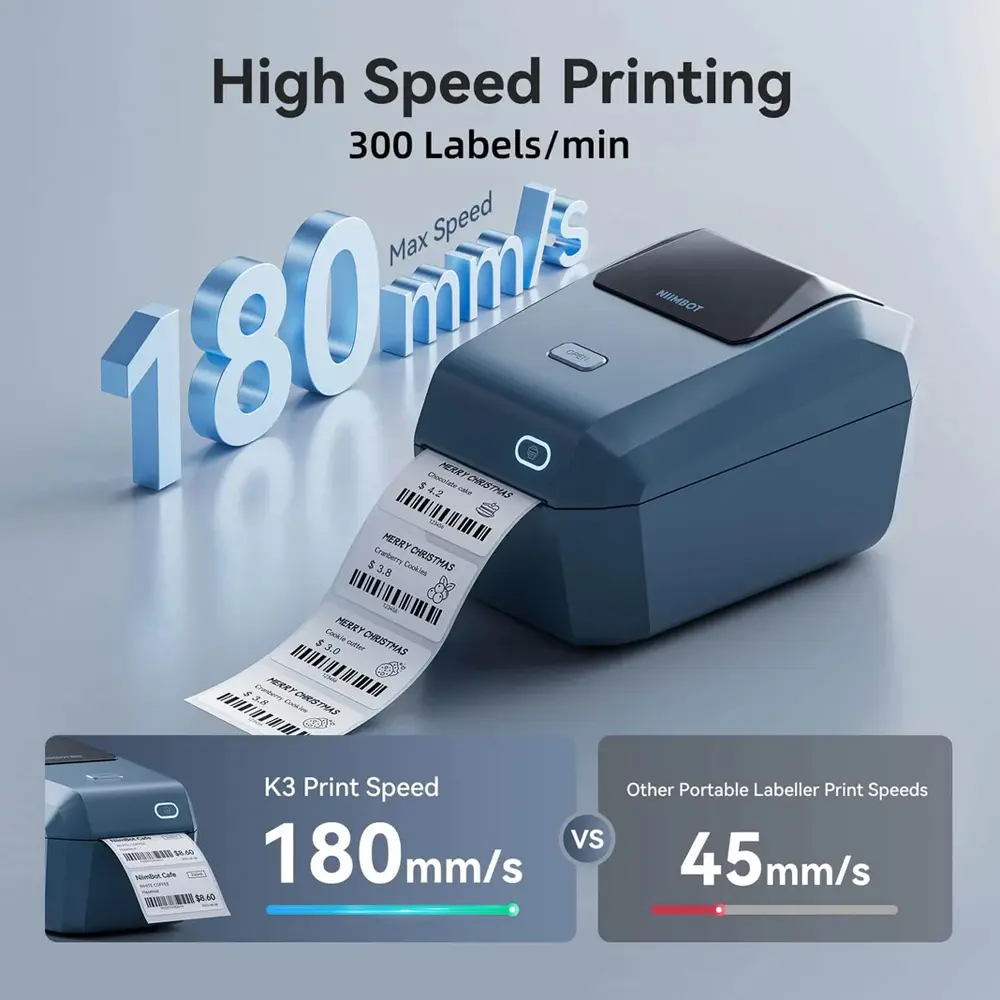 Niimbot K3 Smart Label Printer 3 Inch Label Maker with High-Speed, Bluetooth and USB Connection, Support Smartphone & PC, Thermal Label Maker for Small Business and Home Office