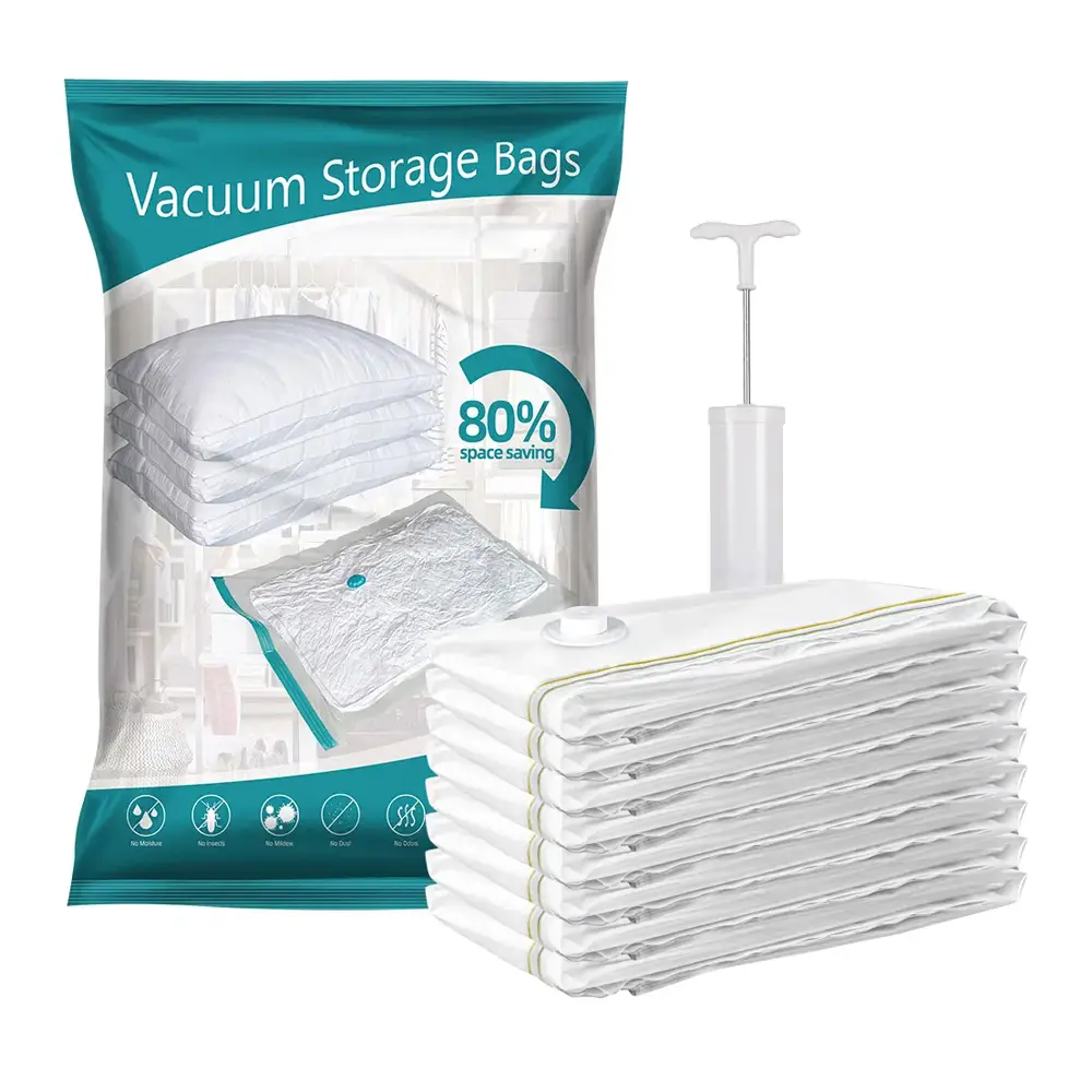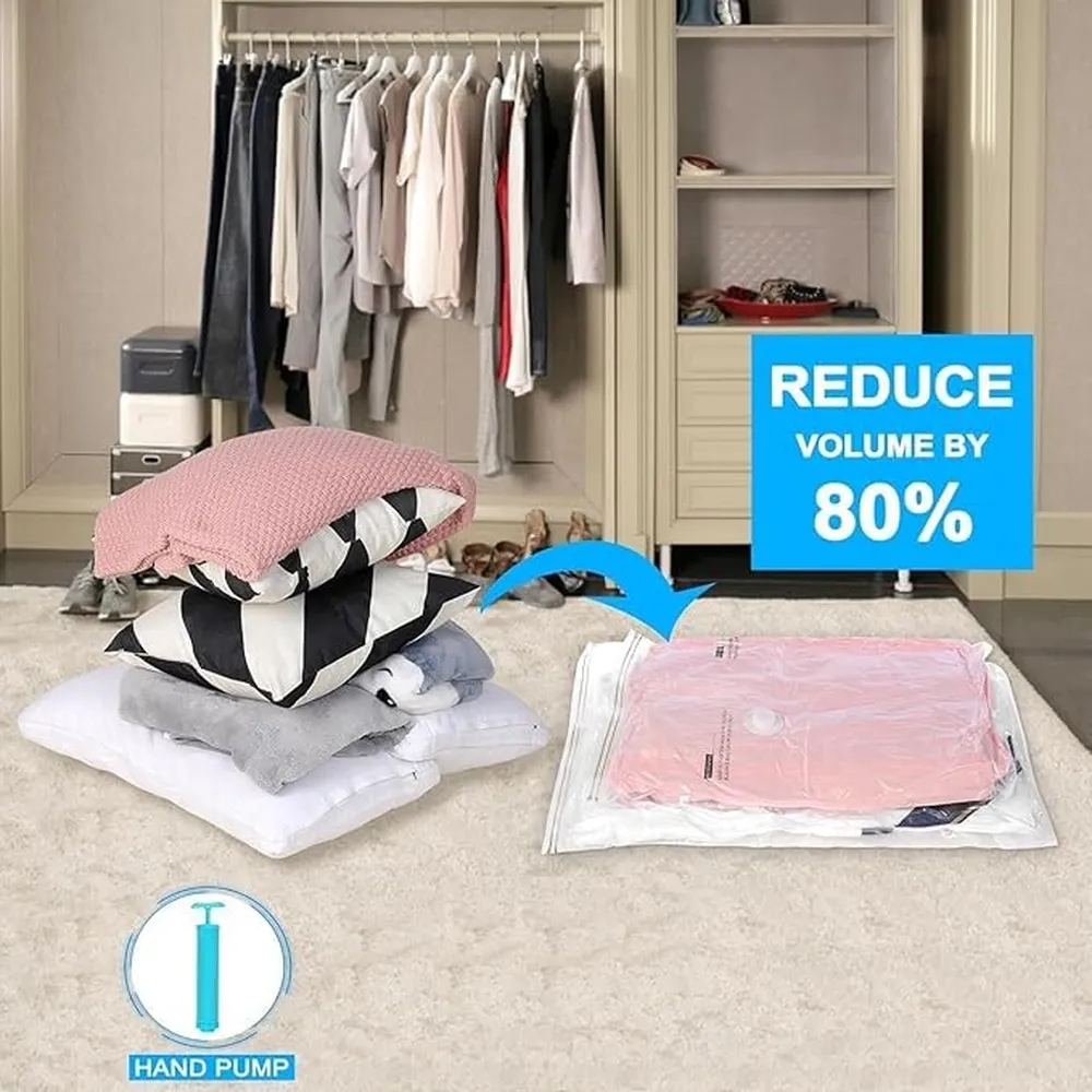 Organize smarter and save space with SpaceSaver Vacuum Seal Bags. These high-capacity storage bags are perfect for compressing bulky items like duvets, pillows, and seasonal clothing. Made of durable 5-layer co-extrusion film, they provide excellent protection against dust, insects, and moisture. Easy to use with or without a vacuum, they’re ideal for home storage or travel. Certified by SGS, RoHS, and FDA for safety and reliability.