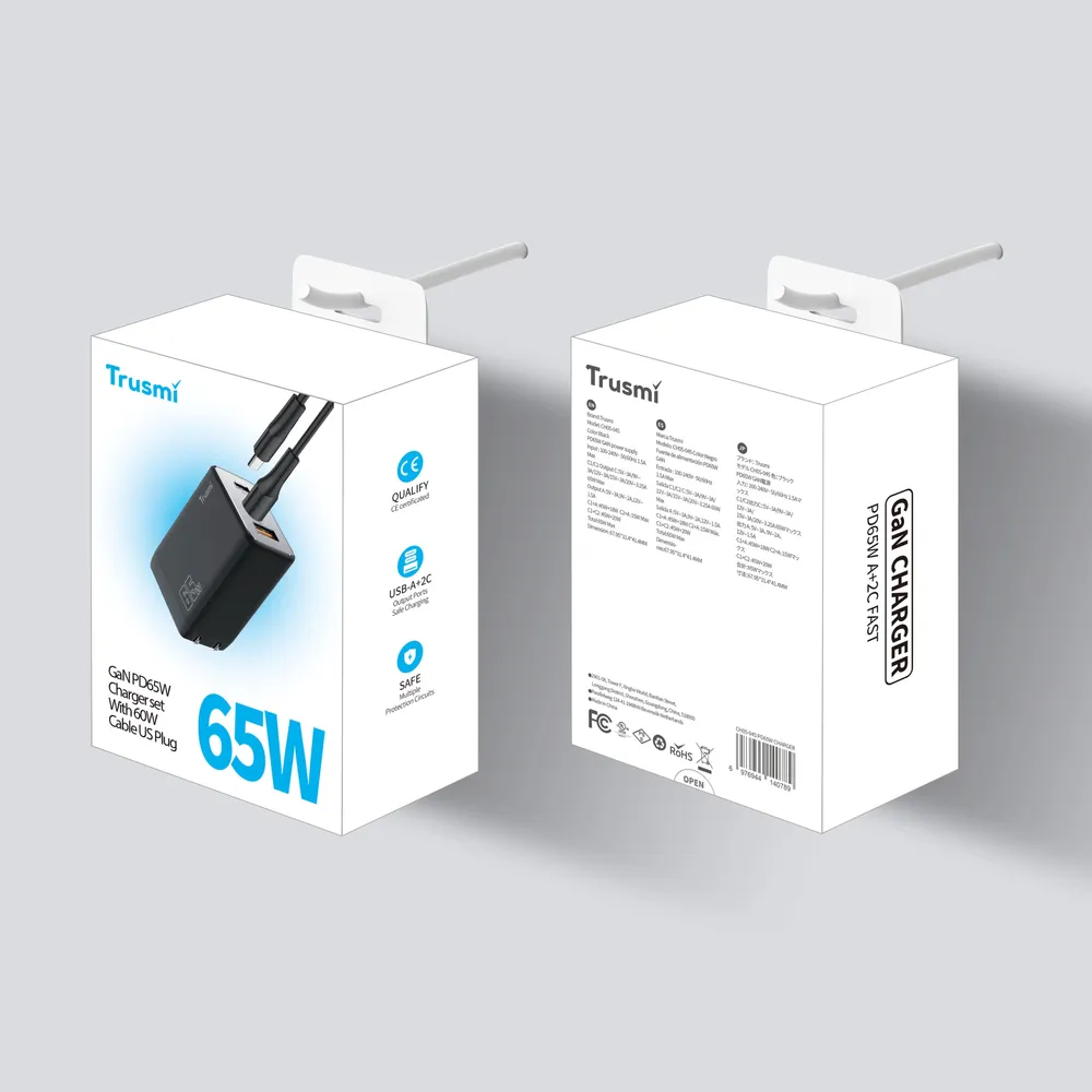 Experience lightning-fast and efficient charging with the Trusmi GaN PD65W Charger. Designed with next-gen Gallium Nitride (GaN) technology, it delivers high power output in a compact, travel-friendly design. The included 60W USB-C cable ensures optimal performance for laptops, tablets, and smartphones. Dual output options allow simultaneous charging, while multiple safety certifications ensure reliable protection. This is the ideal charger for professionals, travelers, and tech enthusiasts.
