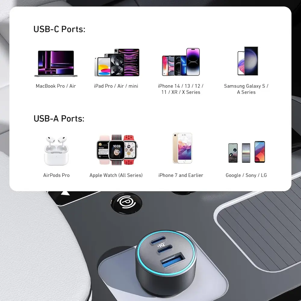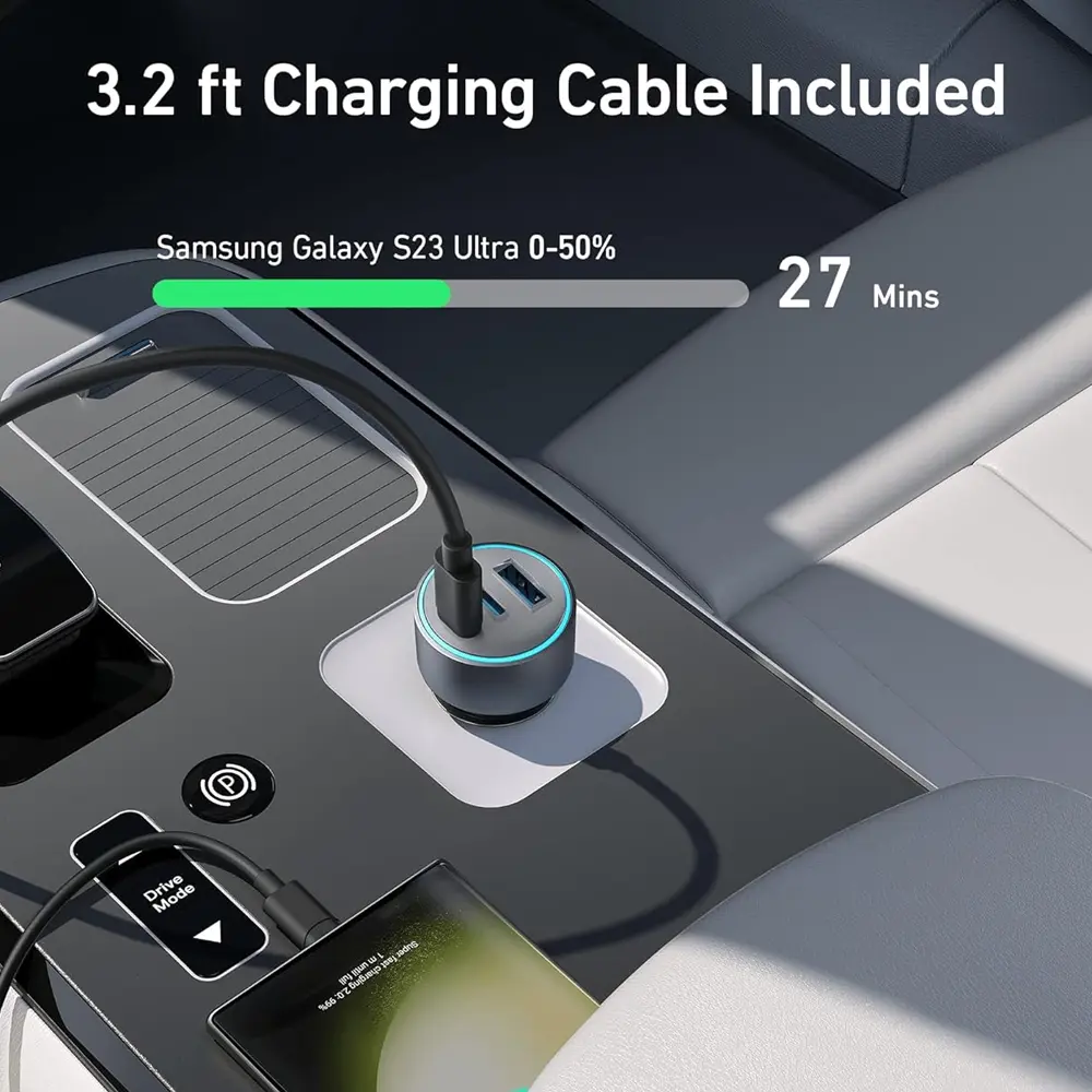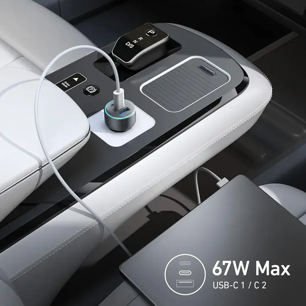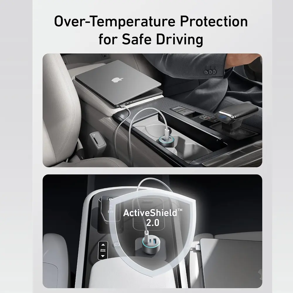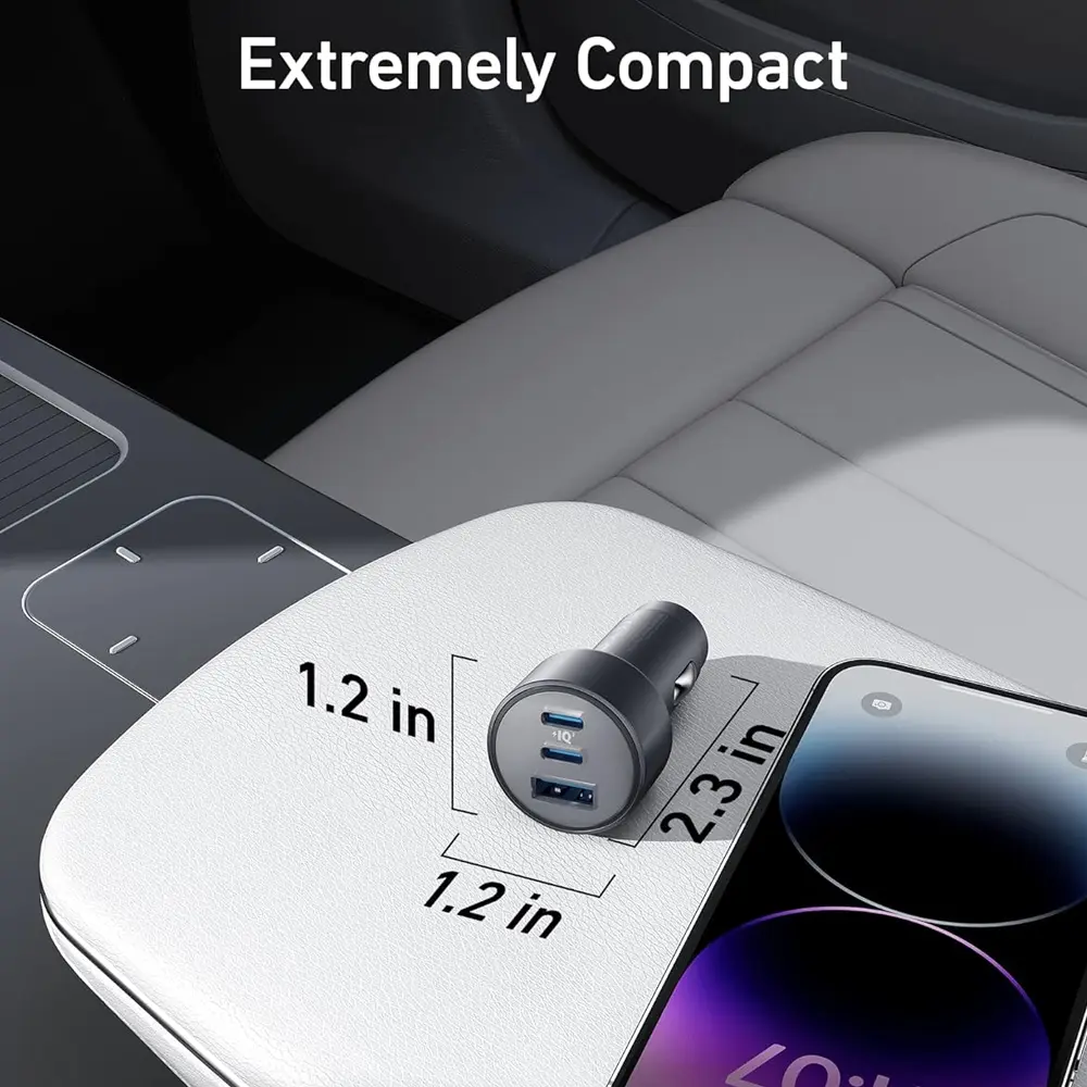 The Anker Powerful Triple-Port Car Charger is designed to keep all your devices charged while on the road. With a total output of 67W, it can charge up to three devices simultaneously using two USB-C ports and one USB-A port. Its high-speed USB-C charging ensures fast and efficient power delivery for smartphones, tablets, and other gadgets. The compact, ultra-portable design makes it easy to carry and fits neatly into any car outlet without taking up space. Equipped with Anker’s ActiveShield 2.0 Safety System, it protects your devices from overheating, overcharging, and short circuits. Perfect for travel, daily commutes, and road trips, this charger combines convenience, speed, and safety in one sleek package.