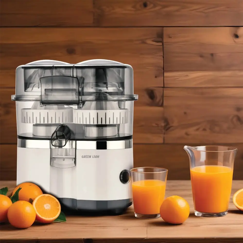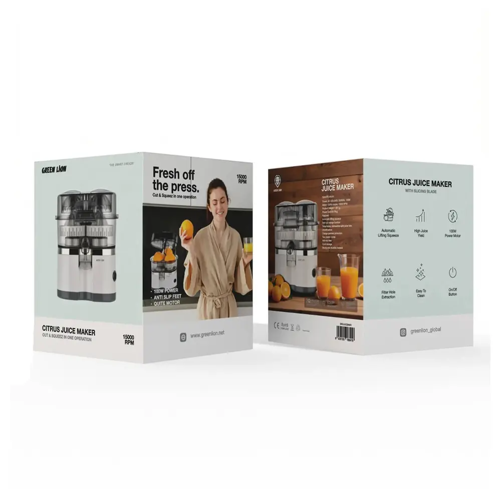 Enjoy fresh, high-quality juice effortlessly with the Green Lion Automatic Citrus Juice Maker. Designed for convenience and efficiency, this juicer features a powerful 100W motor and an automatic lifting squeeze system for smooth, hands-free operation. Its high-speed motor and slicing blade maximize juice extraction while minimizing waste. The filter hole ensures your juice is free from pulp, delivering pure and refreshing results every time. Easy to clean and built with durable materials, it's the perfect addition to any kitchen.