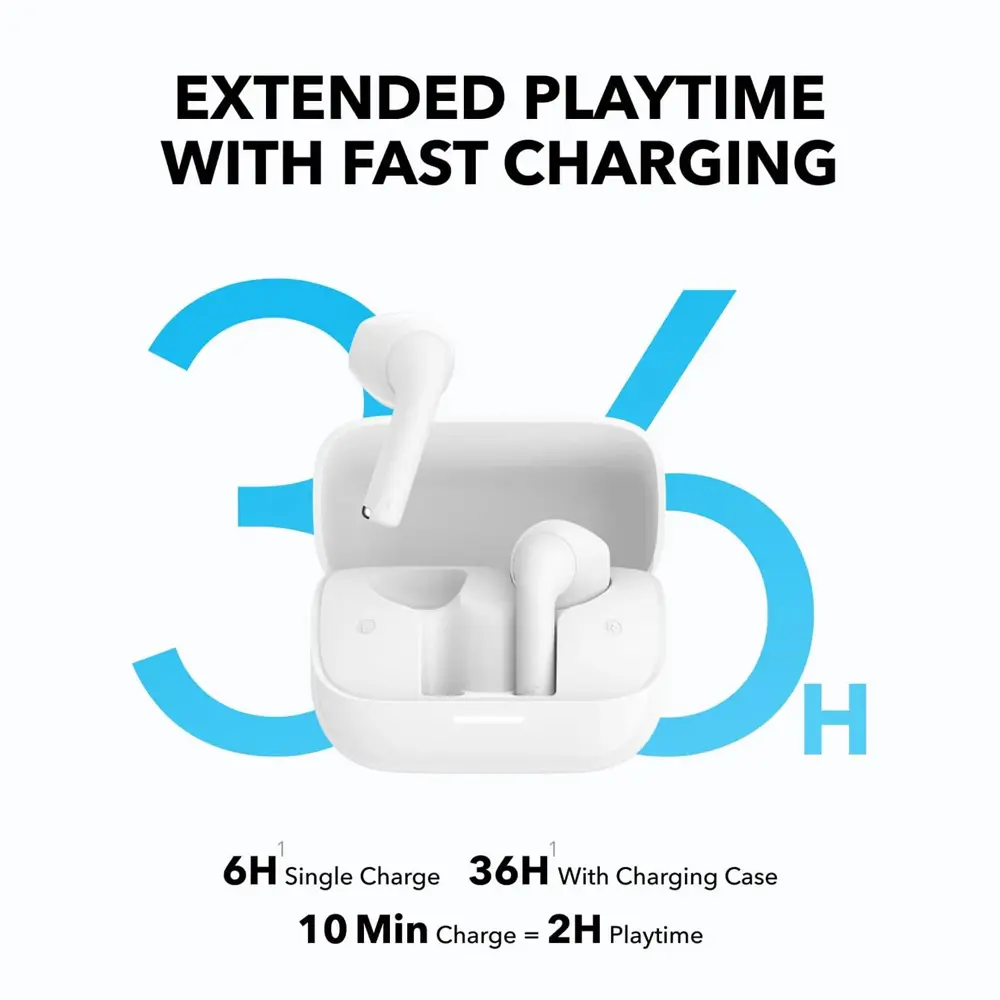 Soundcore K20i Semi-in-Ear Earbuds, Bluetooth Wireless, 36H Playtime, Fast Charge, Clear Sound, Comfortable Fit, ENC 2-Mic Clear Calls, Custom EQ, IPX5, Bluetooth 5.3, App Control.