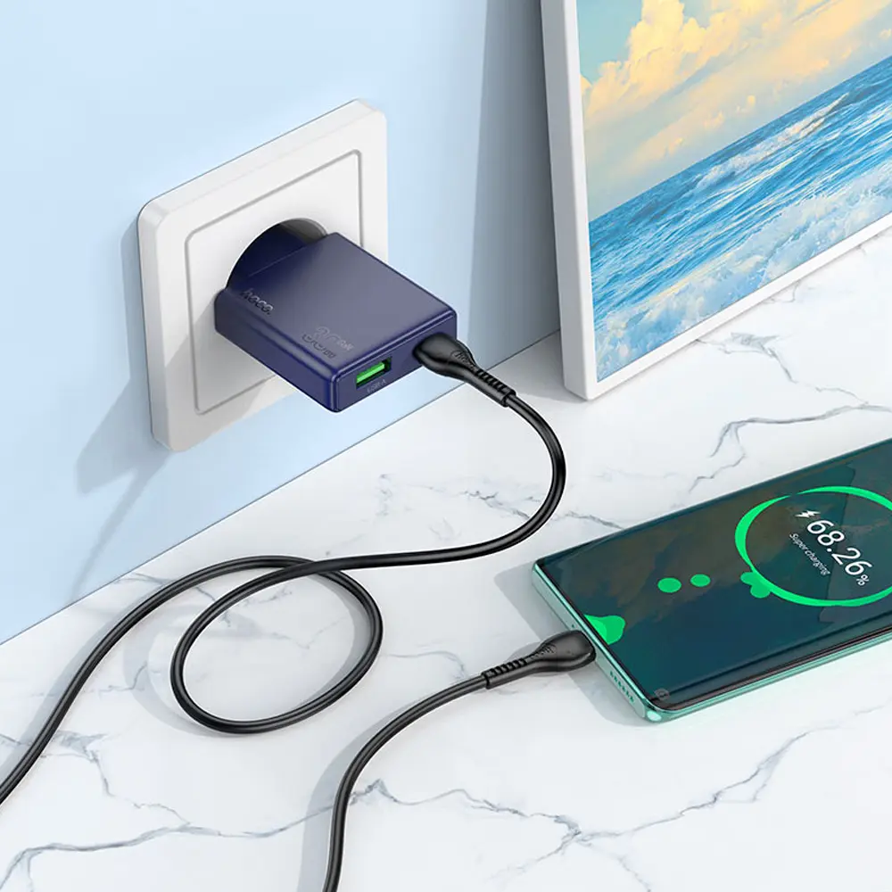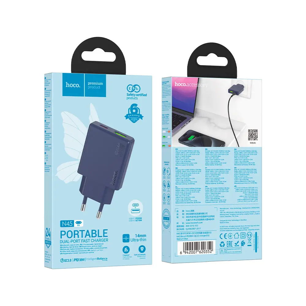 Hoco N45 dual port wall charger set is a versatile and powerful charging solution designed to meet the needs of modern devices. With its high-speed charging capabilities, compact design, and durable construction, this charger set is perfect for those who need a reliable and efficient way to charge their gadgets.